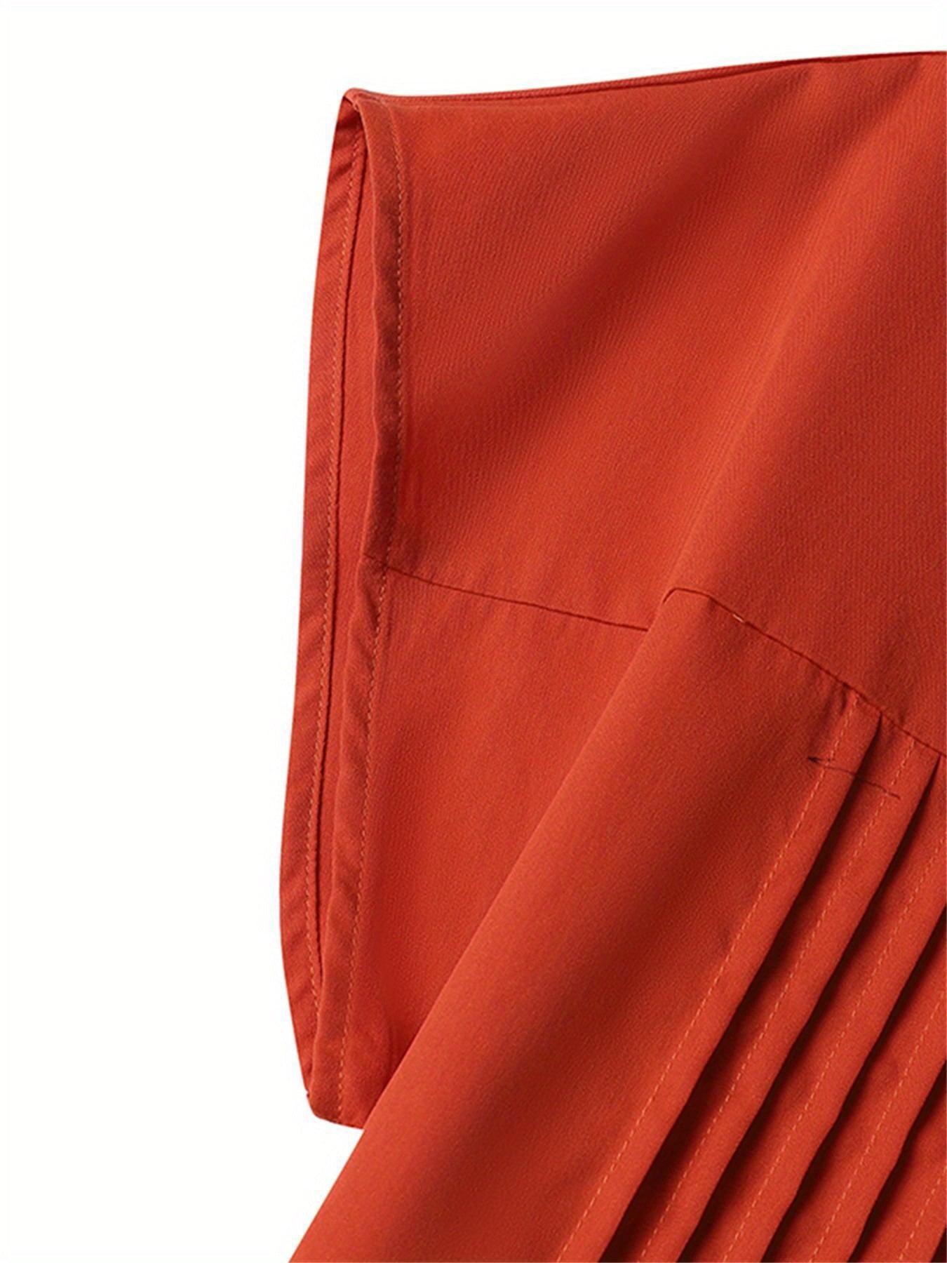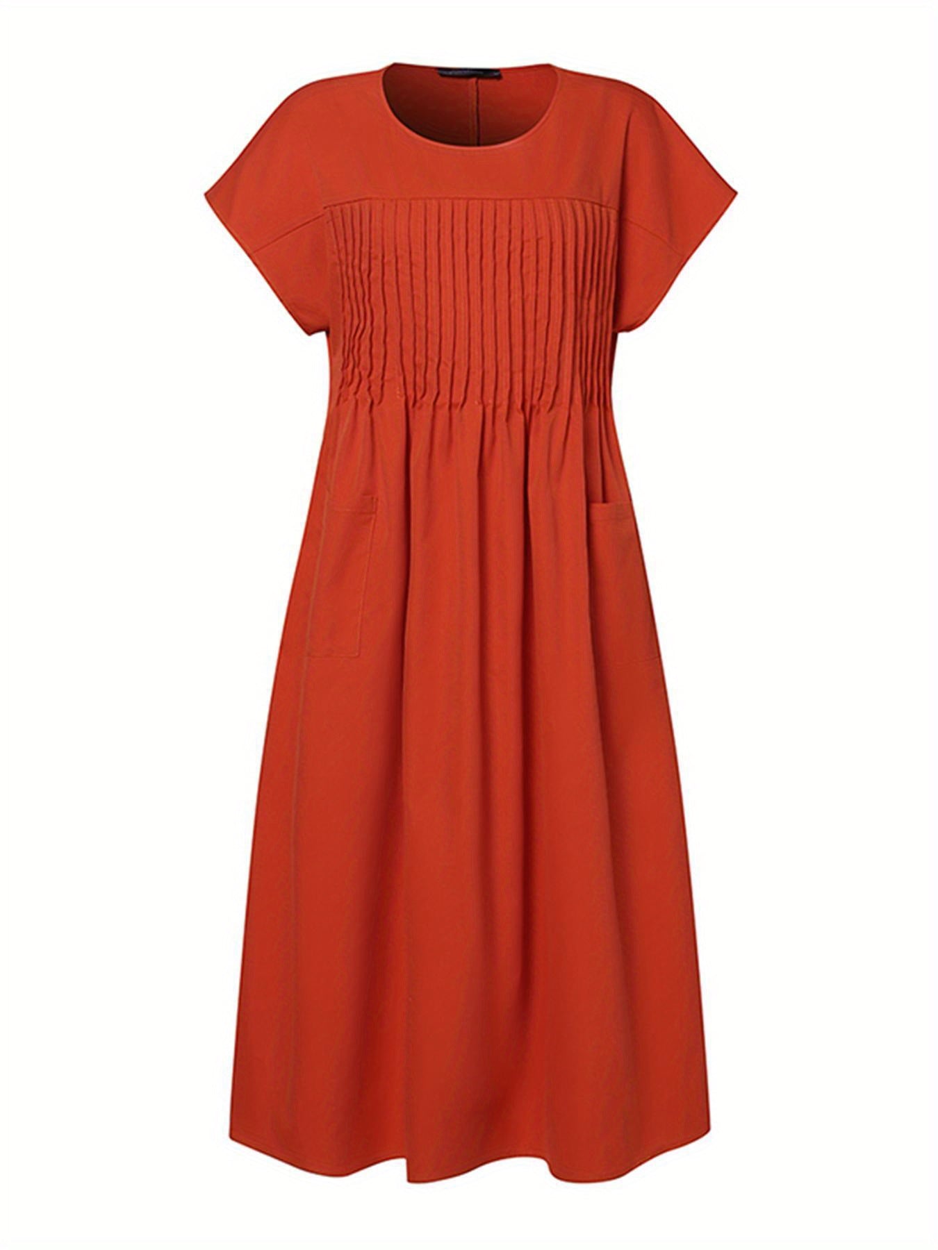 Sale Solid Pintuck Midi Dress, Casual Crew Neck Short Sleeve Dress