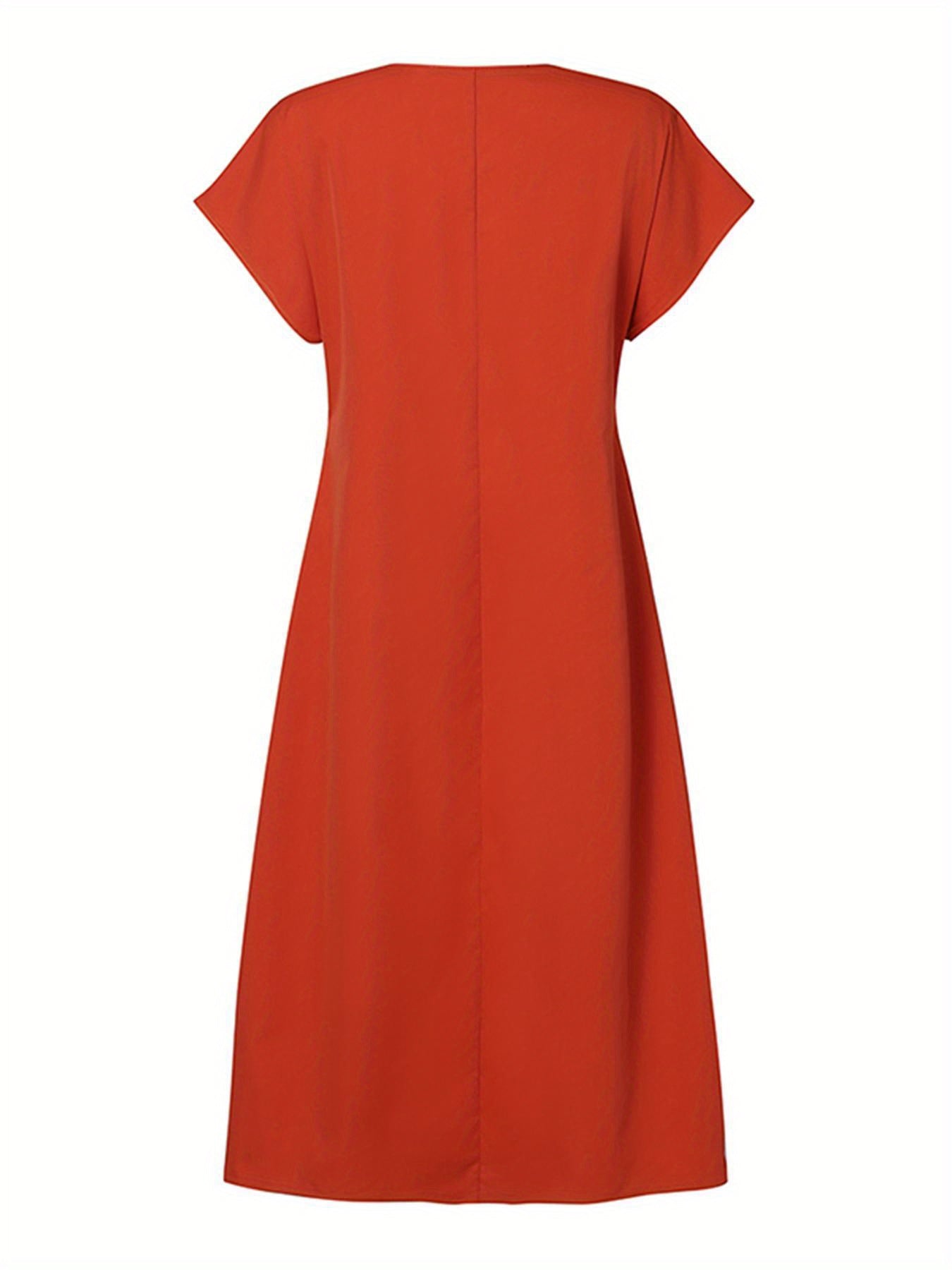 Plain Three Quarter Sleeve Spring/Fall Split Joint Crew Neck Daily Casual Midi Tunic A-Line Dress