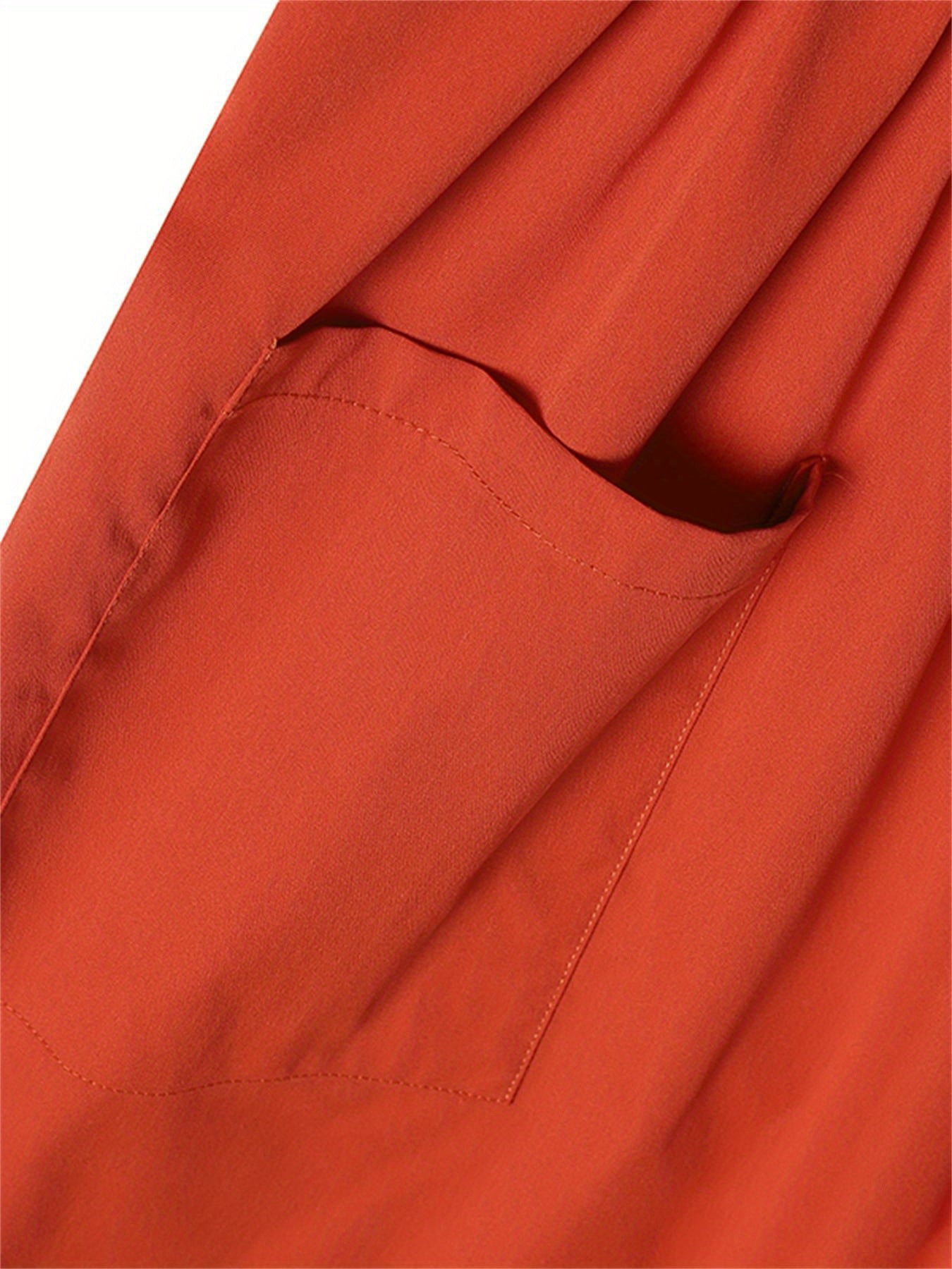 Solid Color Elegant Long Sleeve V-Neck Midi Dress