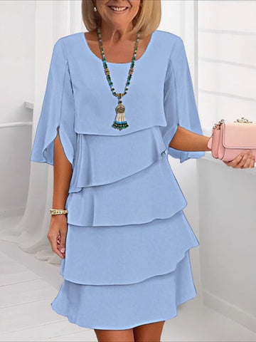 Solid Color Half Sleeve Crew Neck Mini Dress