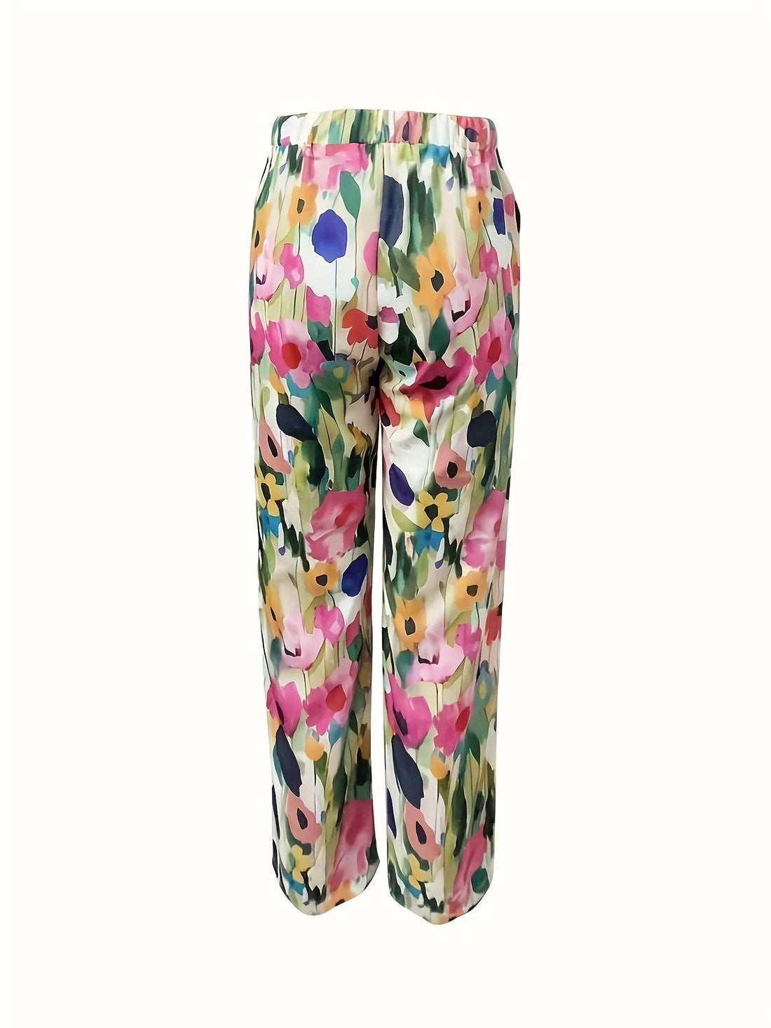 Sale Casual Two-Piece Set Color Block Print Short Sleeve Top With Side Slit & High-Waisted Shorts