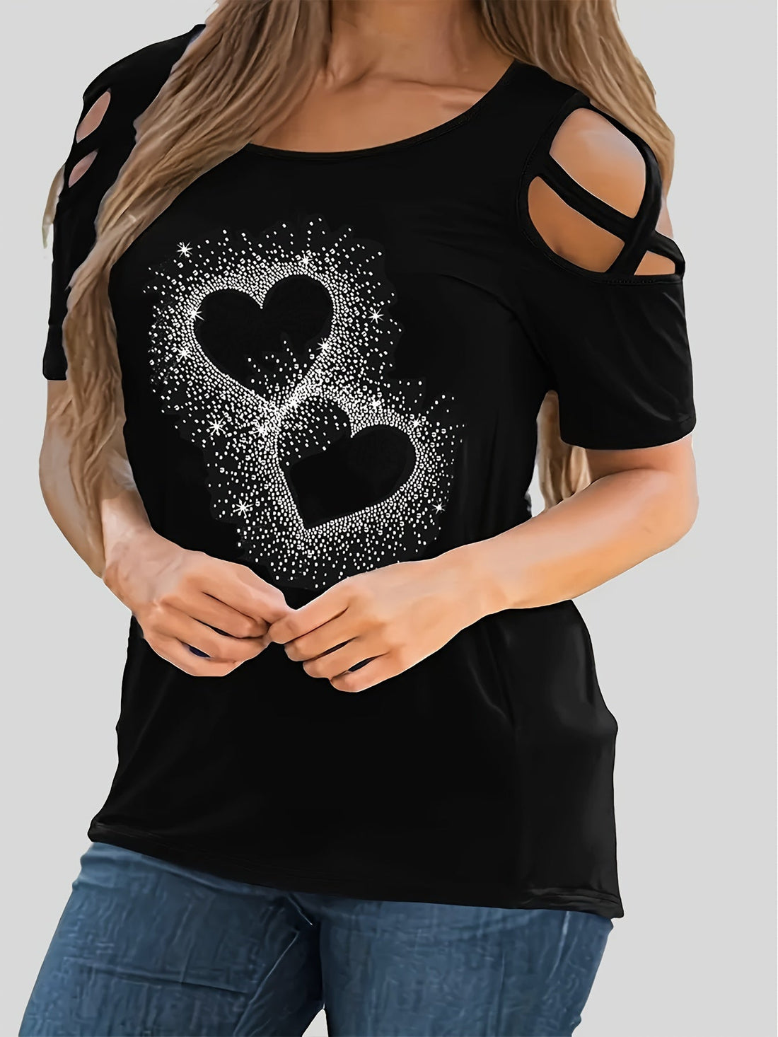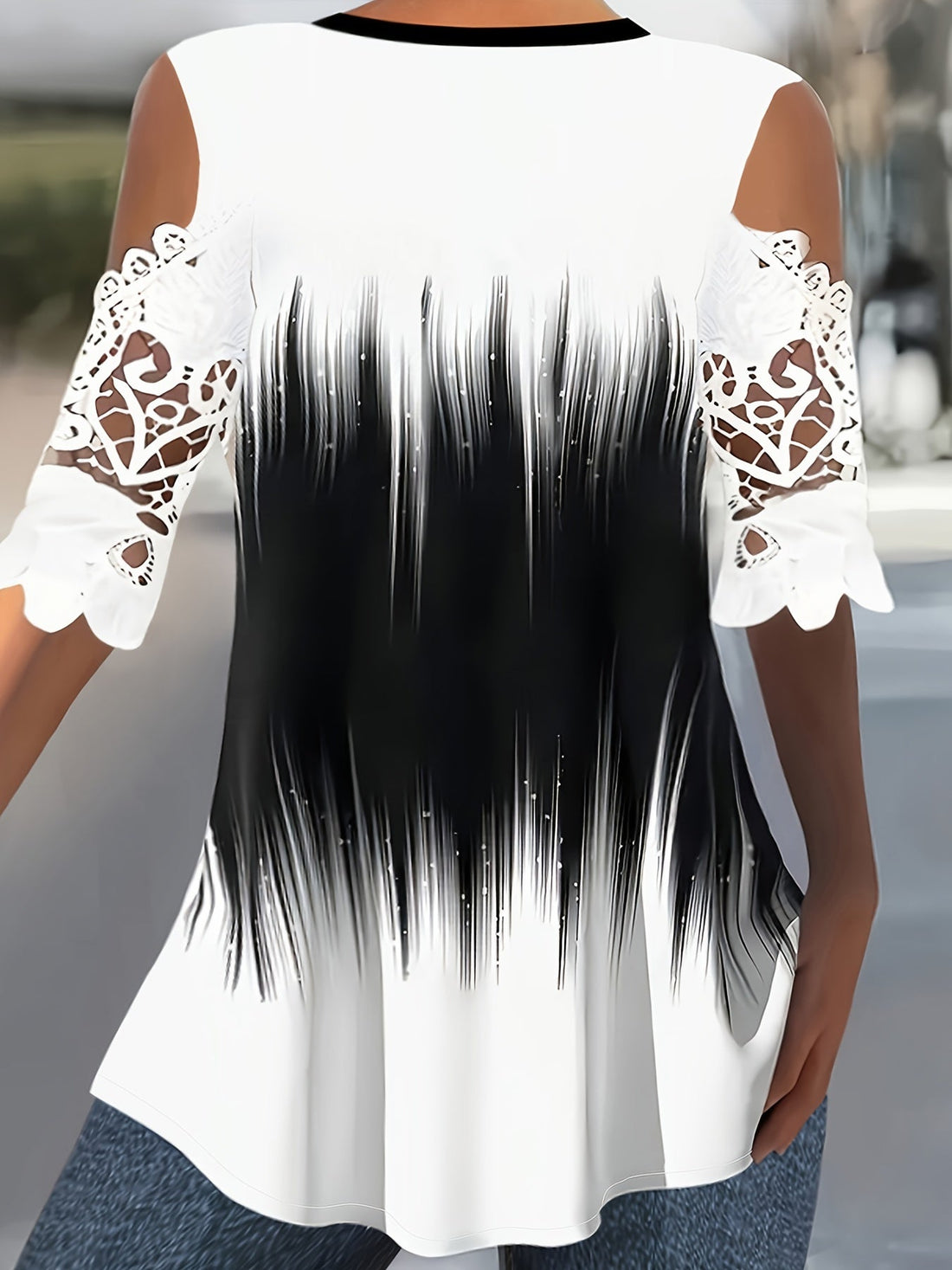 Sale Casual Patchwork Pattern Round Neck Short Sleeve Loose Women T-Shirt