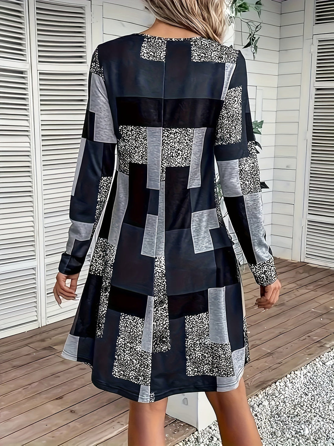 Solid Color Long Sleeve Crew Neck Cocktail Dress