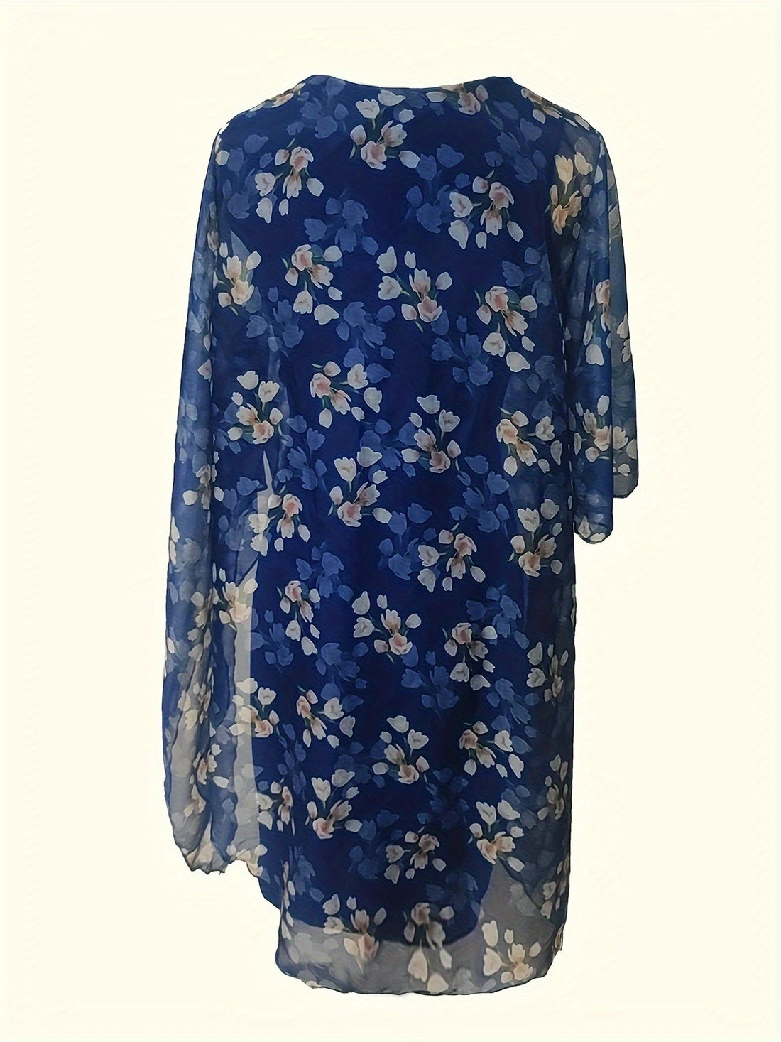 Sale Elegant Floral Print Knee-Length Short Sleeve Round Neck A-Line Dress