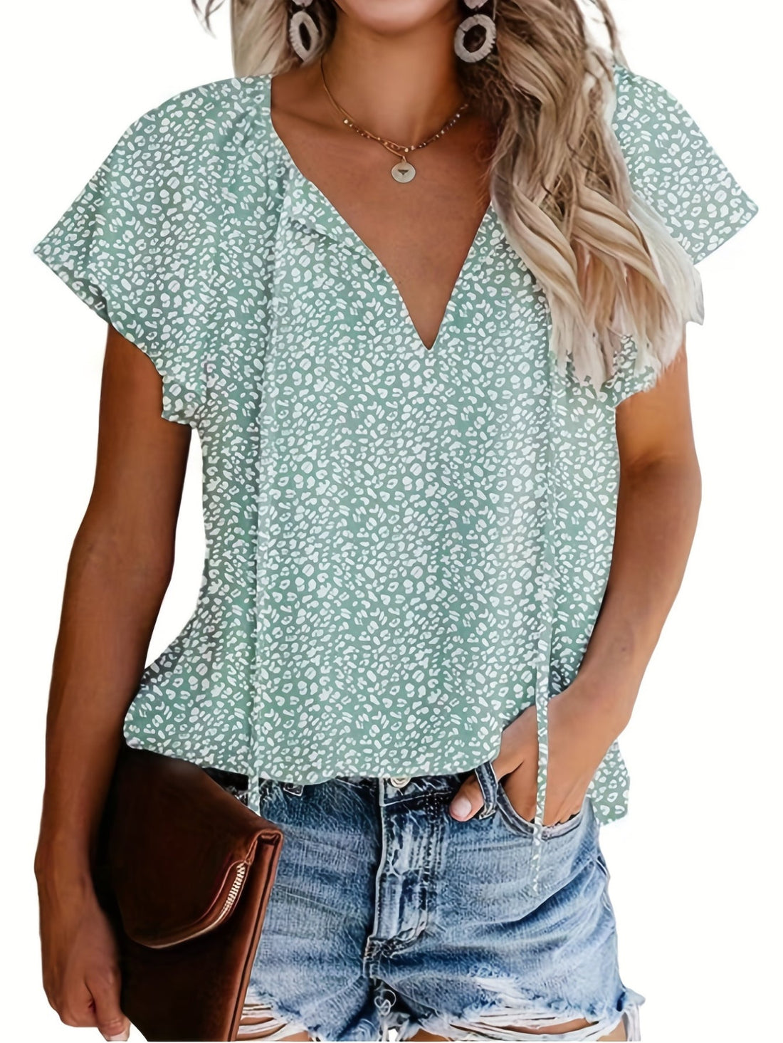 Sale V Neck Flutter Sleeve Blouse, Loose Casual Top