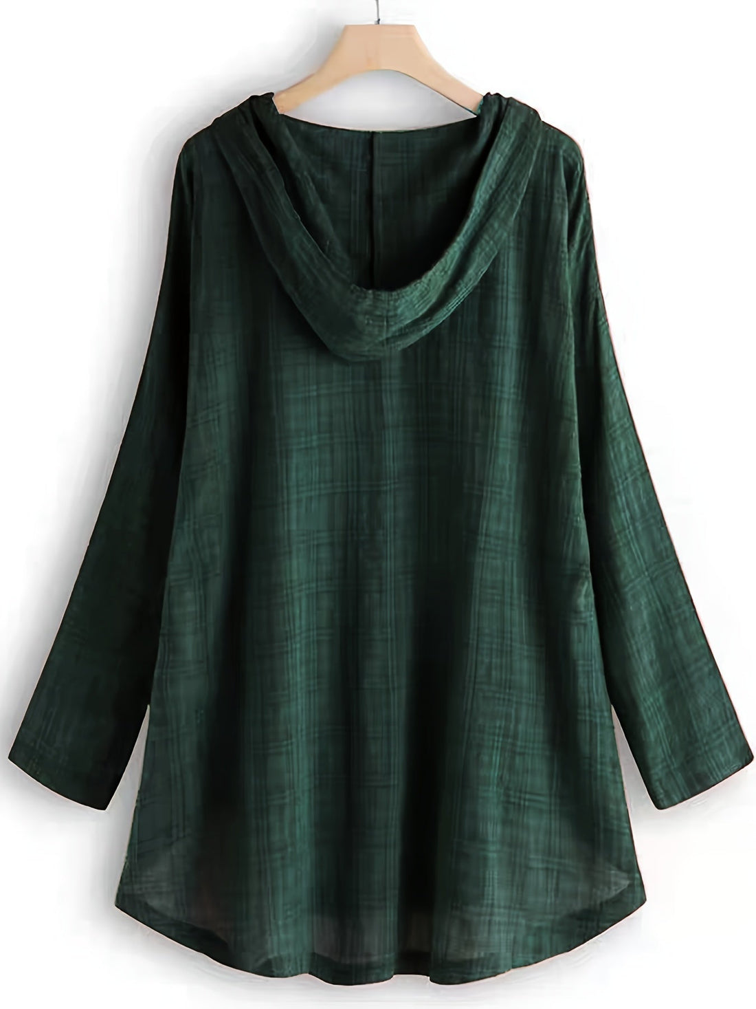 Sale Brown Plaid Patchwork Long Sleeve Button Hooded Blouse