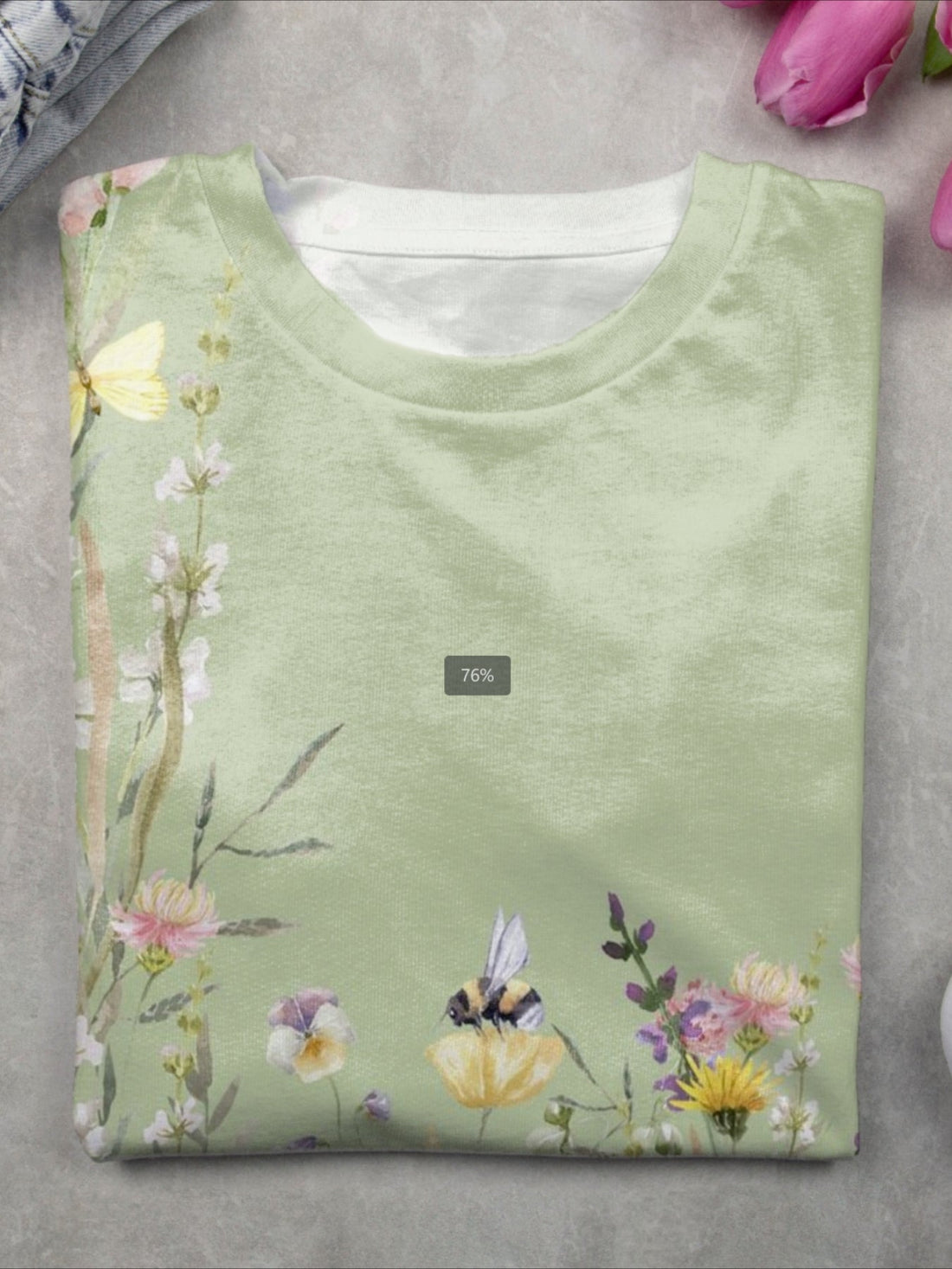 Crew Neck Floral Long Sleeve Comfy Casual Sweater Tee