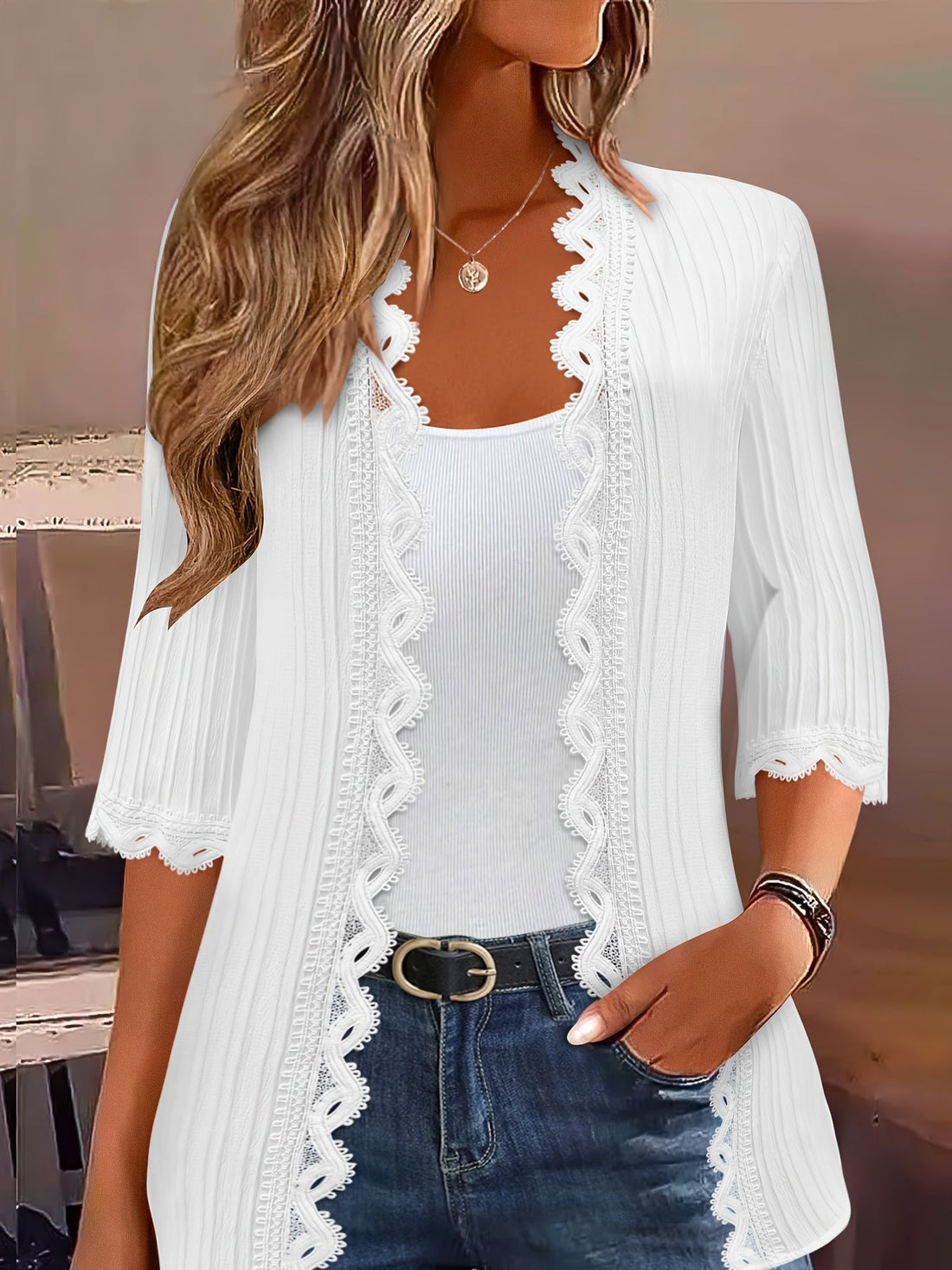 V Neck Button Down Waffle Solid Loose Pullover Long Sleeve Top