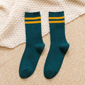 Sale 5/10 Pairs Solid Patched Stripes Crew Socks, Basic Sports Business Stockings