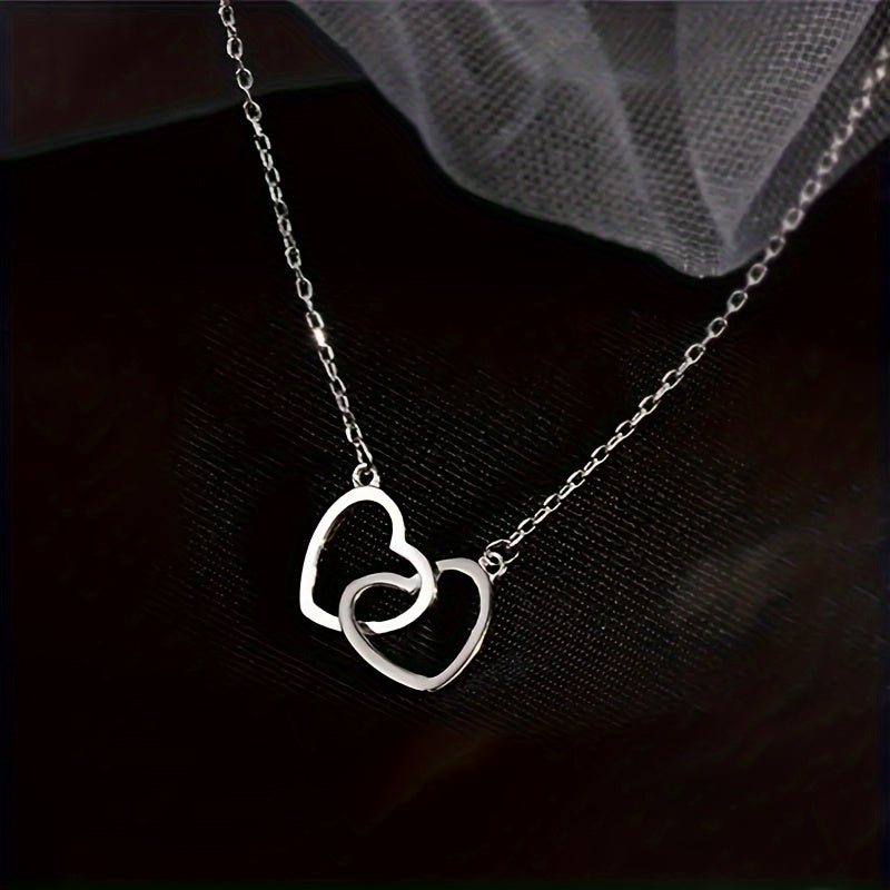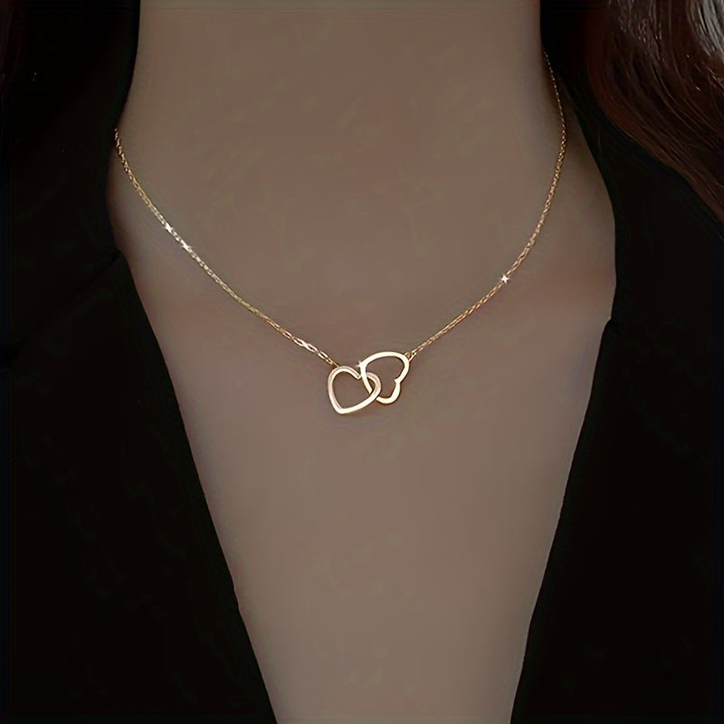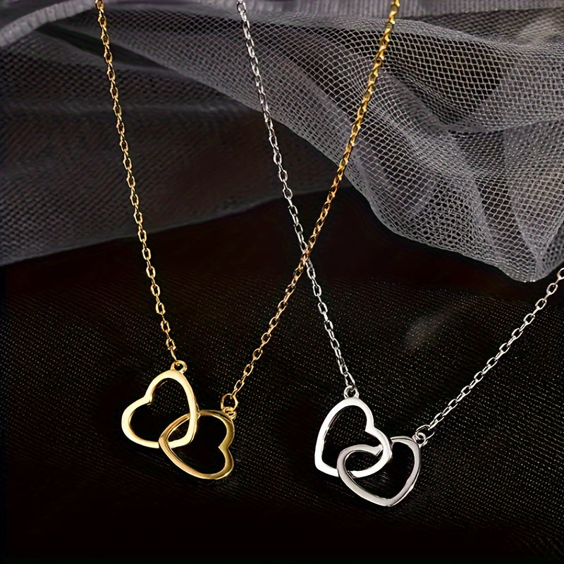 Simple Elegant Hollow Heart Pendant Necklace, Alloy Double Loop Design, Fashionable Daily Wear Jewelry, Ideal Valentine'S Day Gift for Her