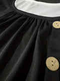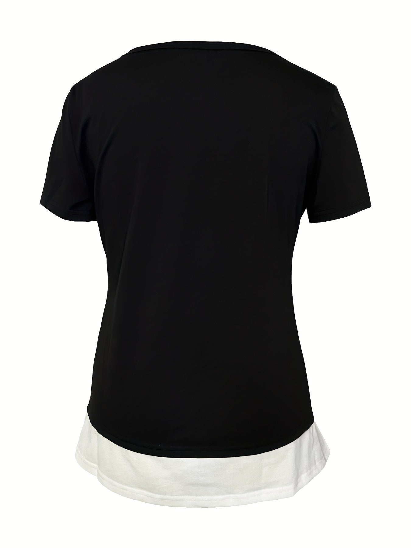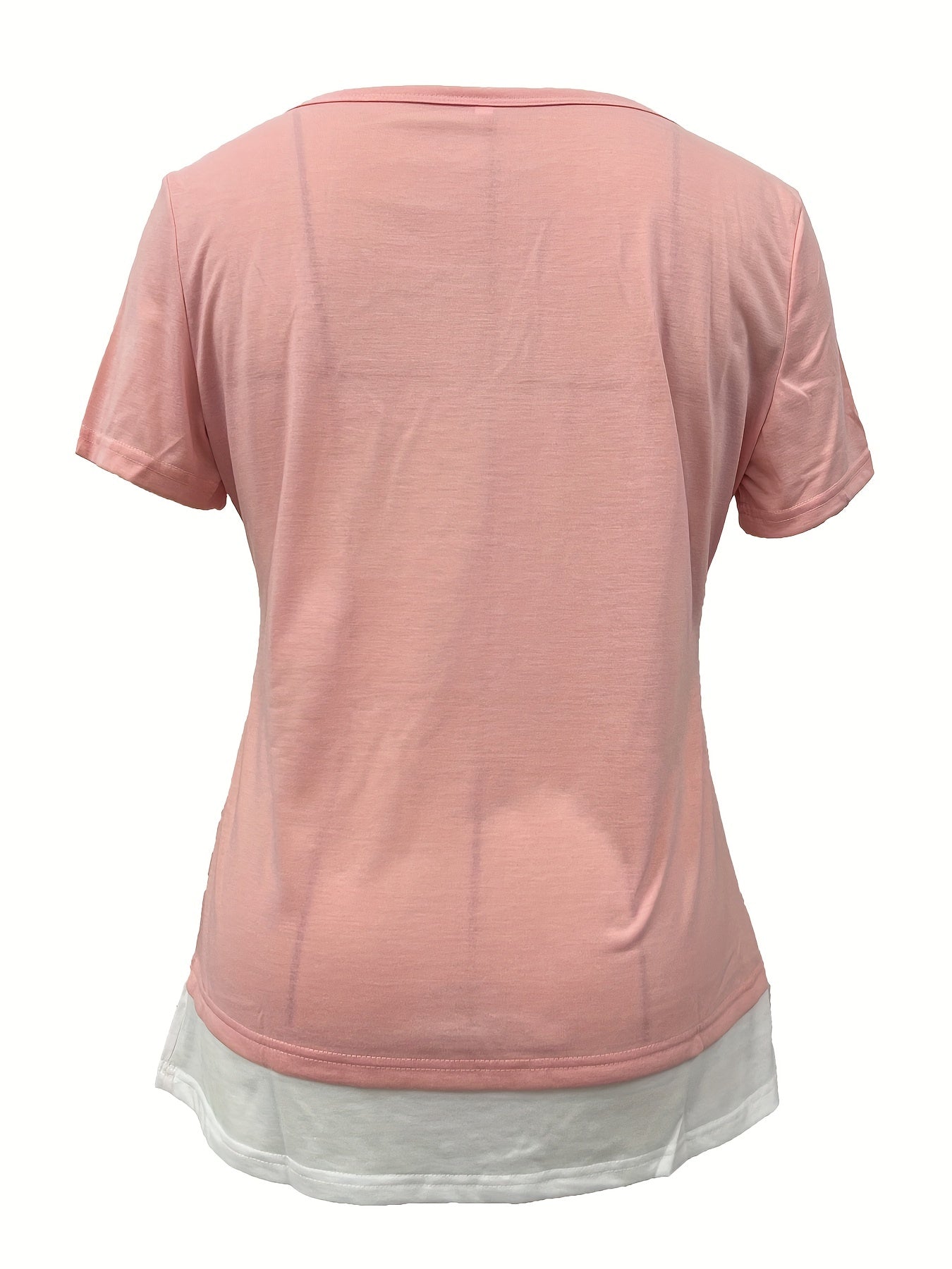 2 In 1 Color Block Button Front T-shirt, Casual Short Sleeve T-Shirt