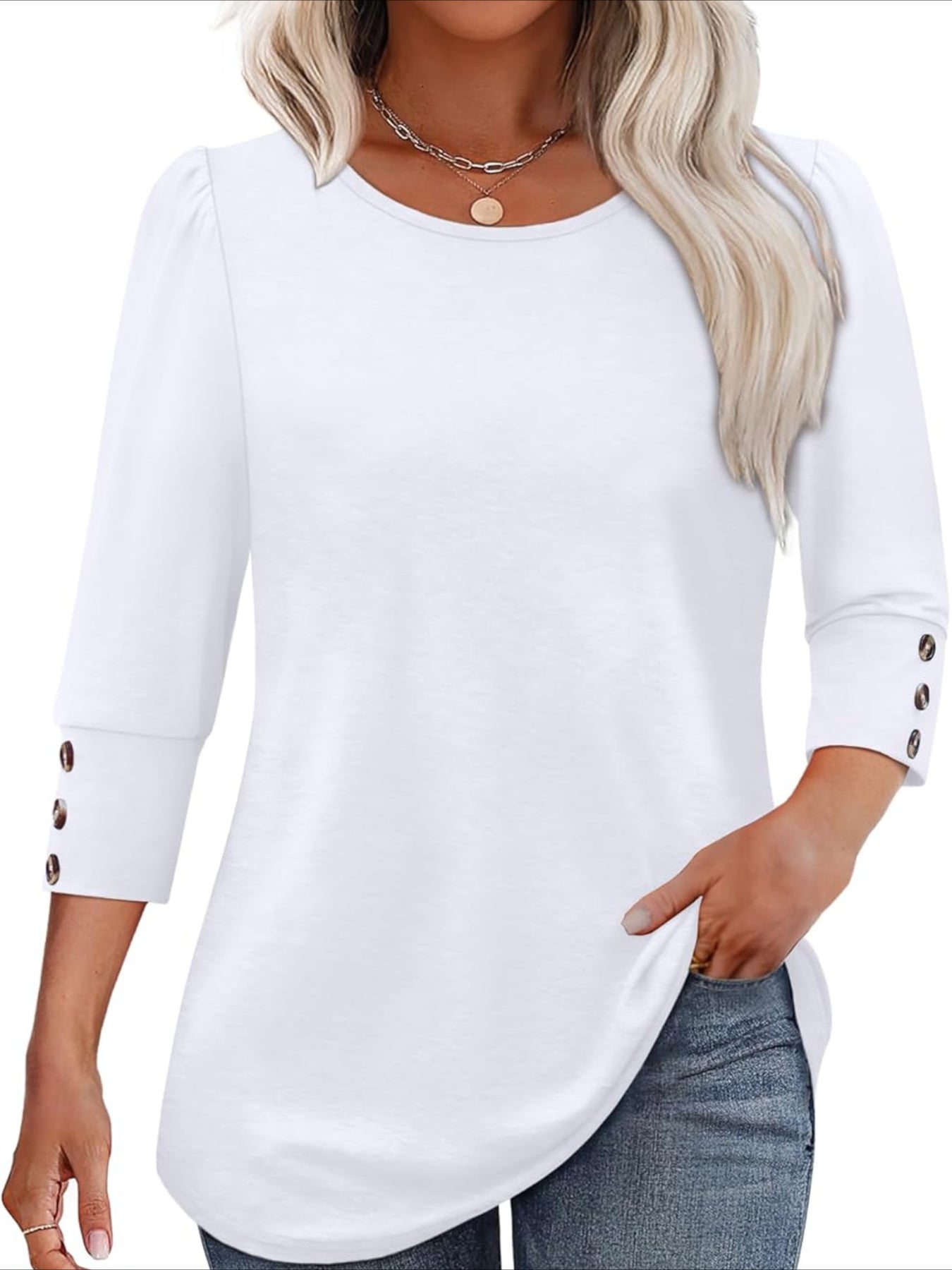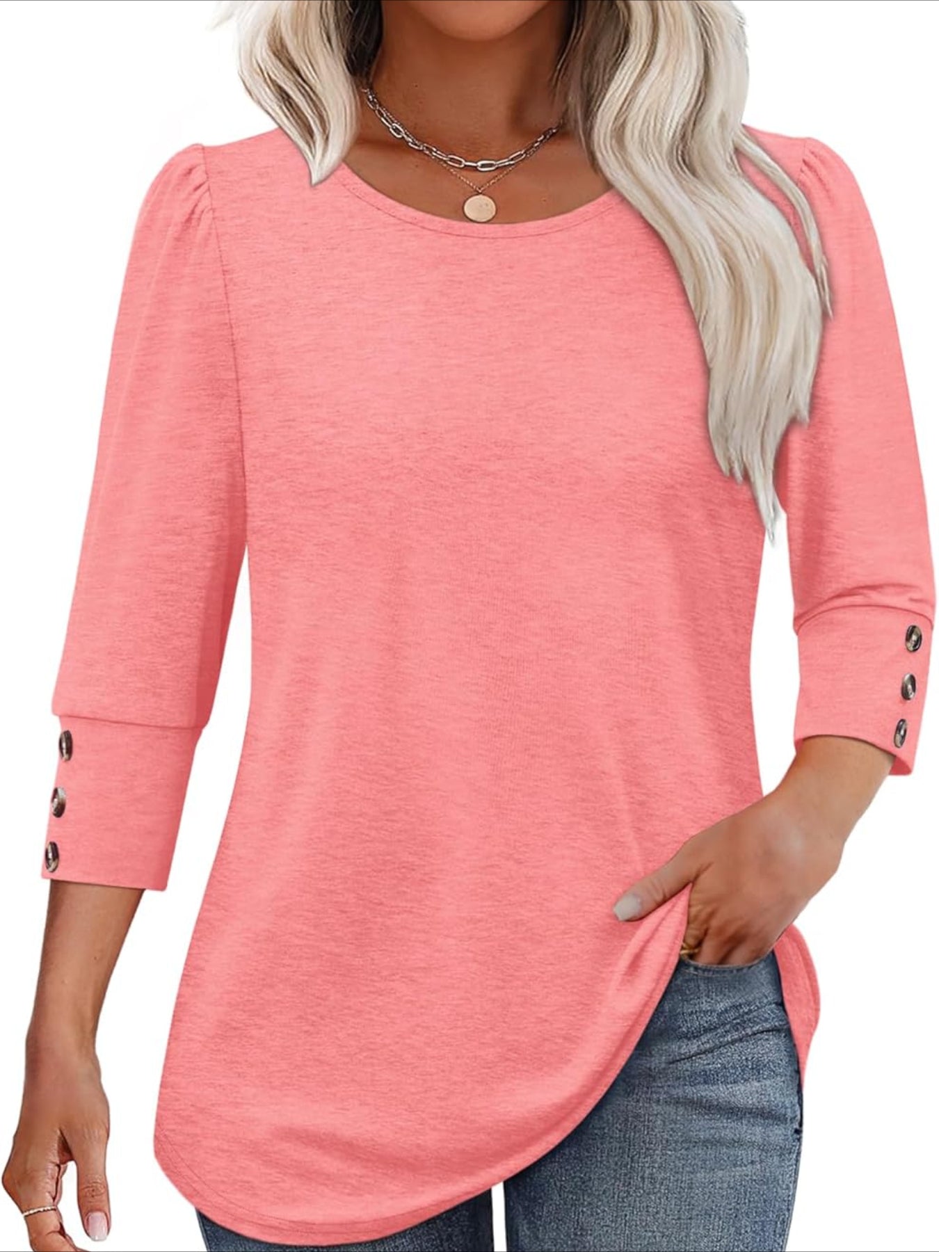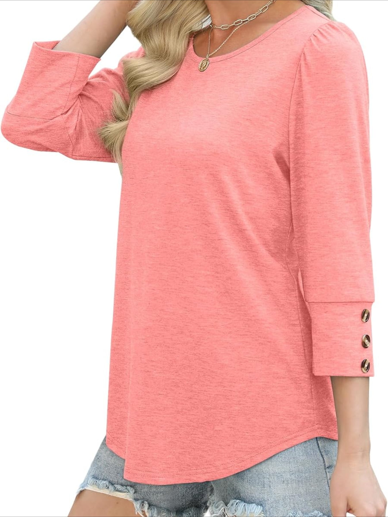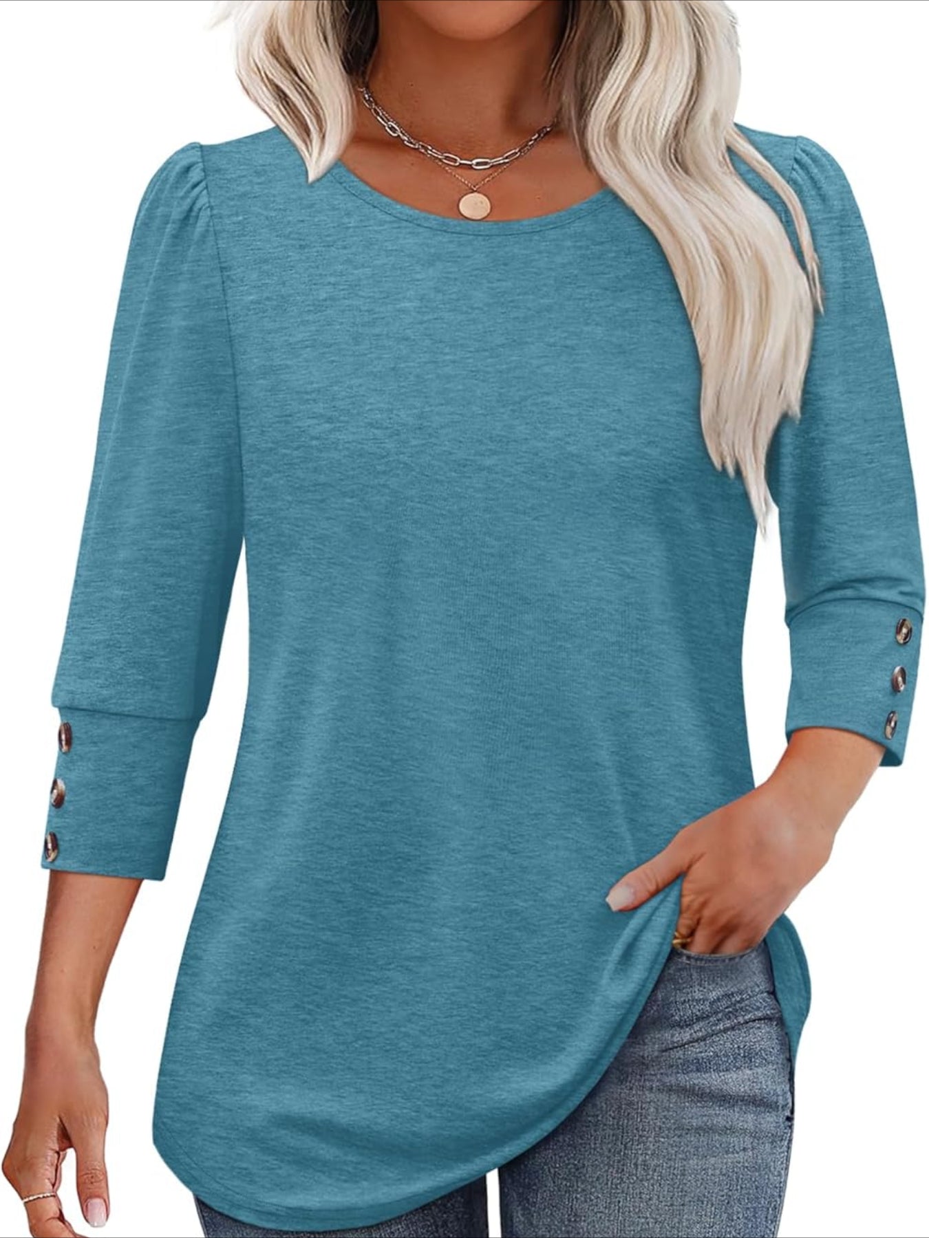 3/4 Sleeve with Buttons Dressy Casual Blouses