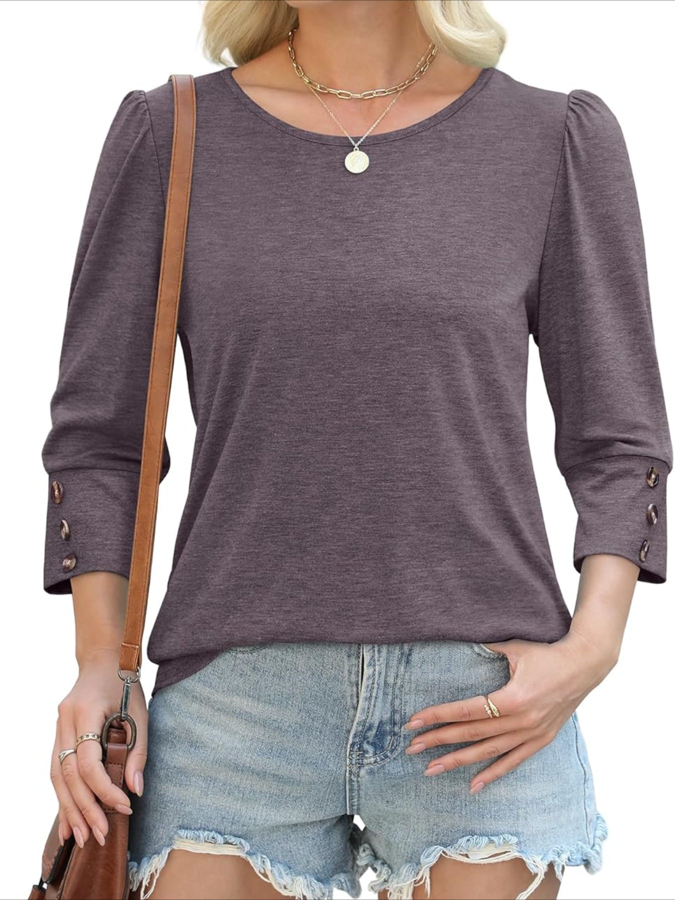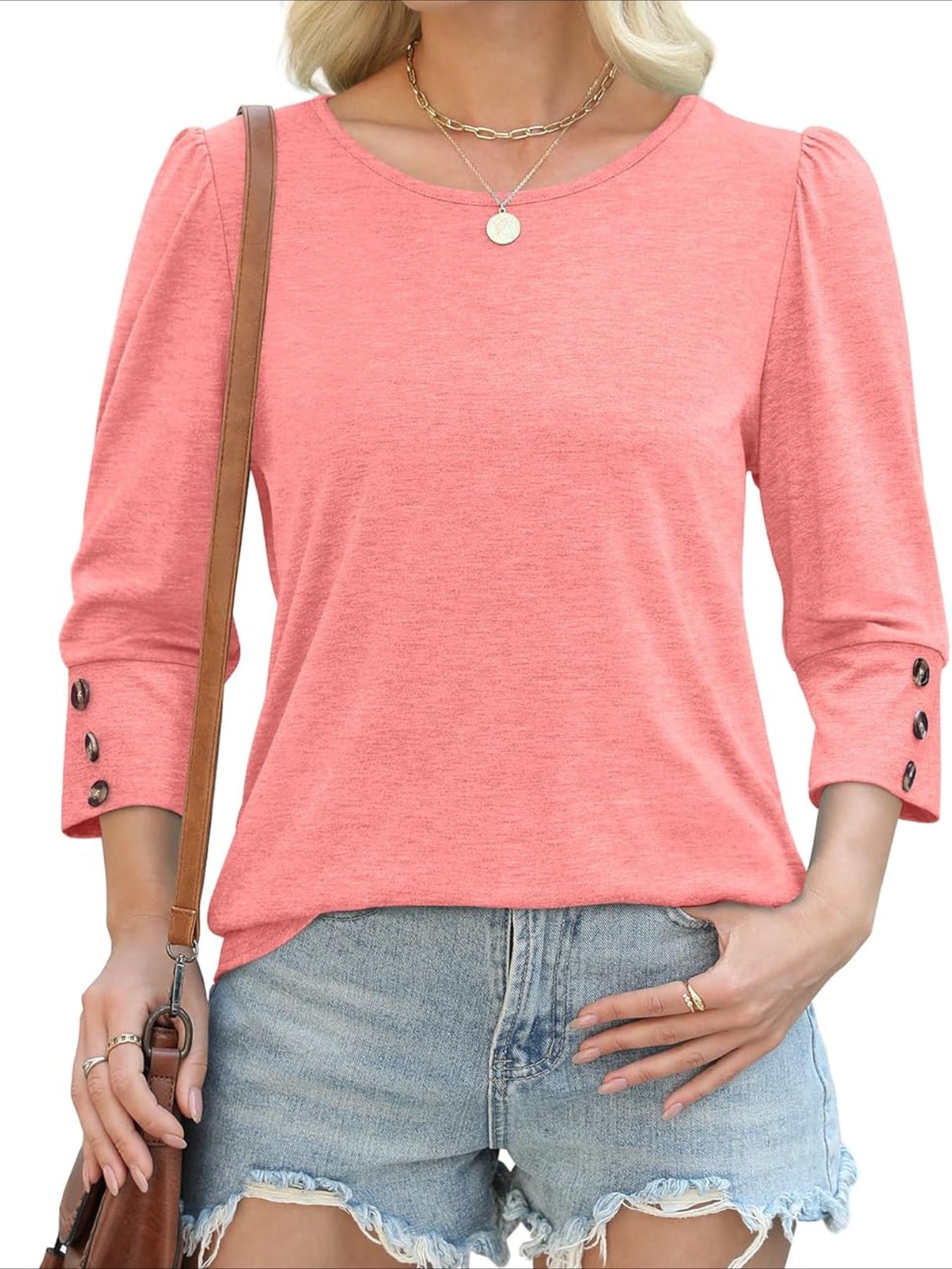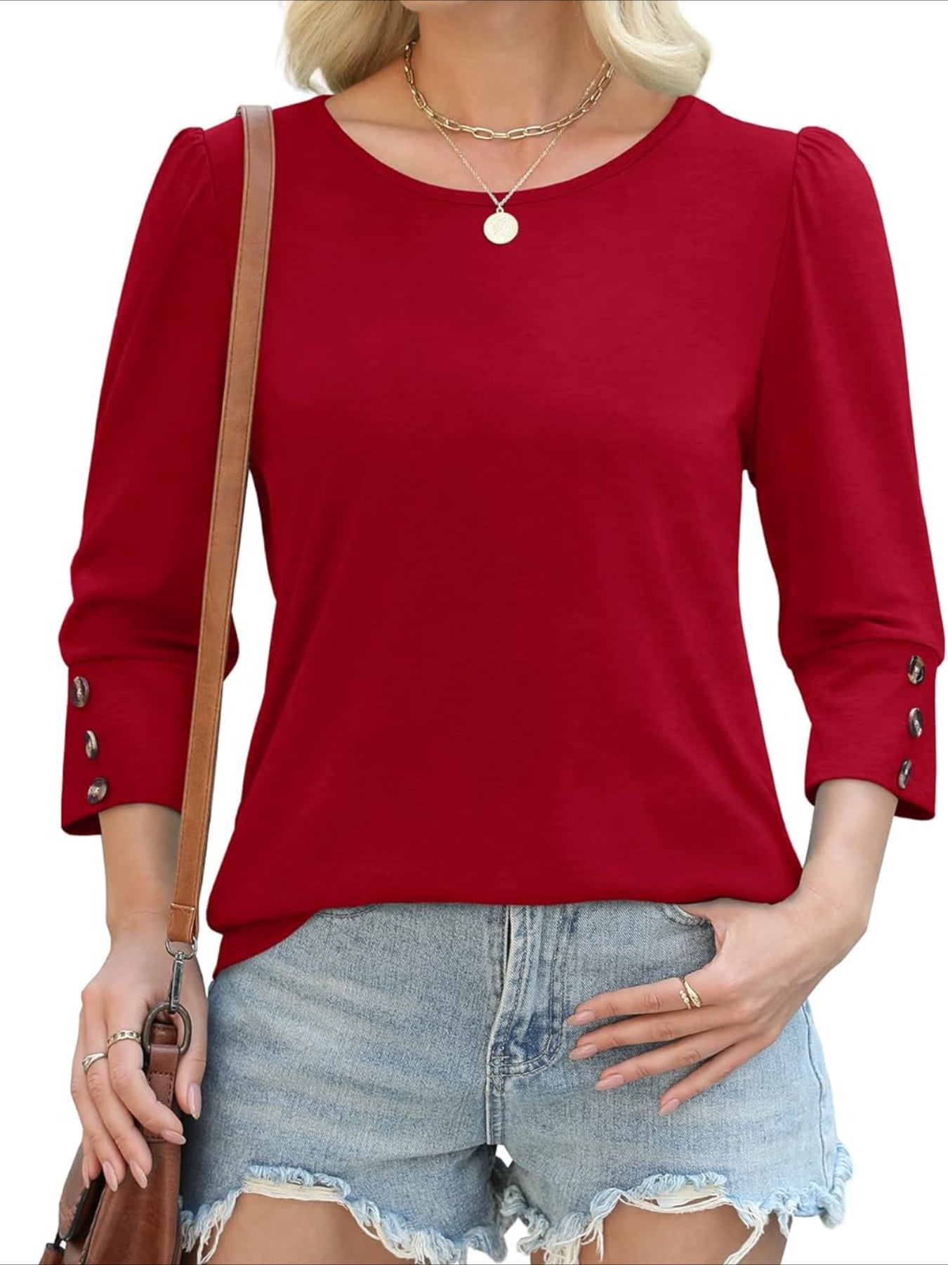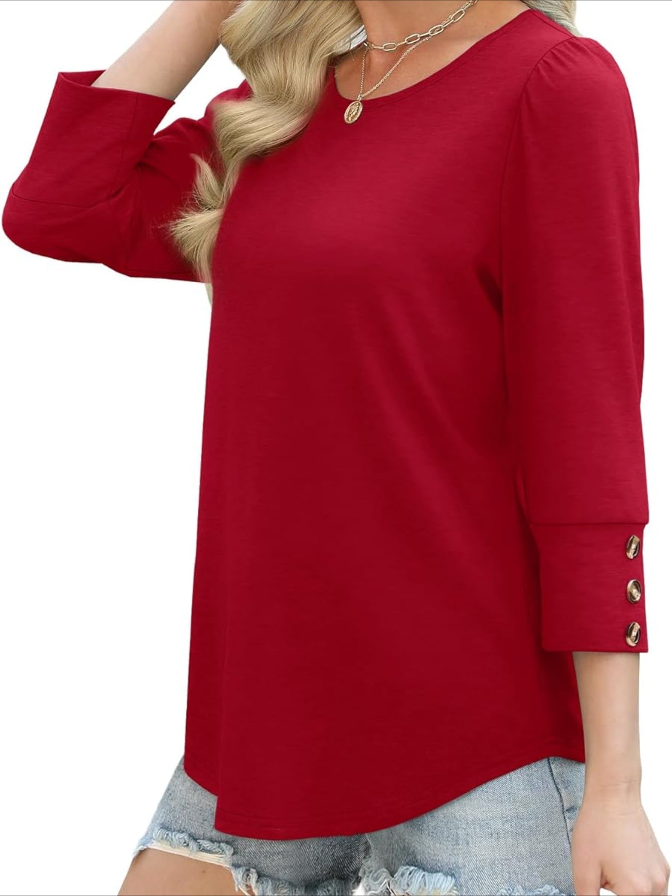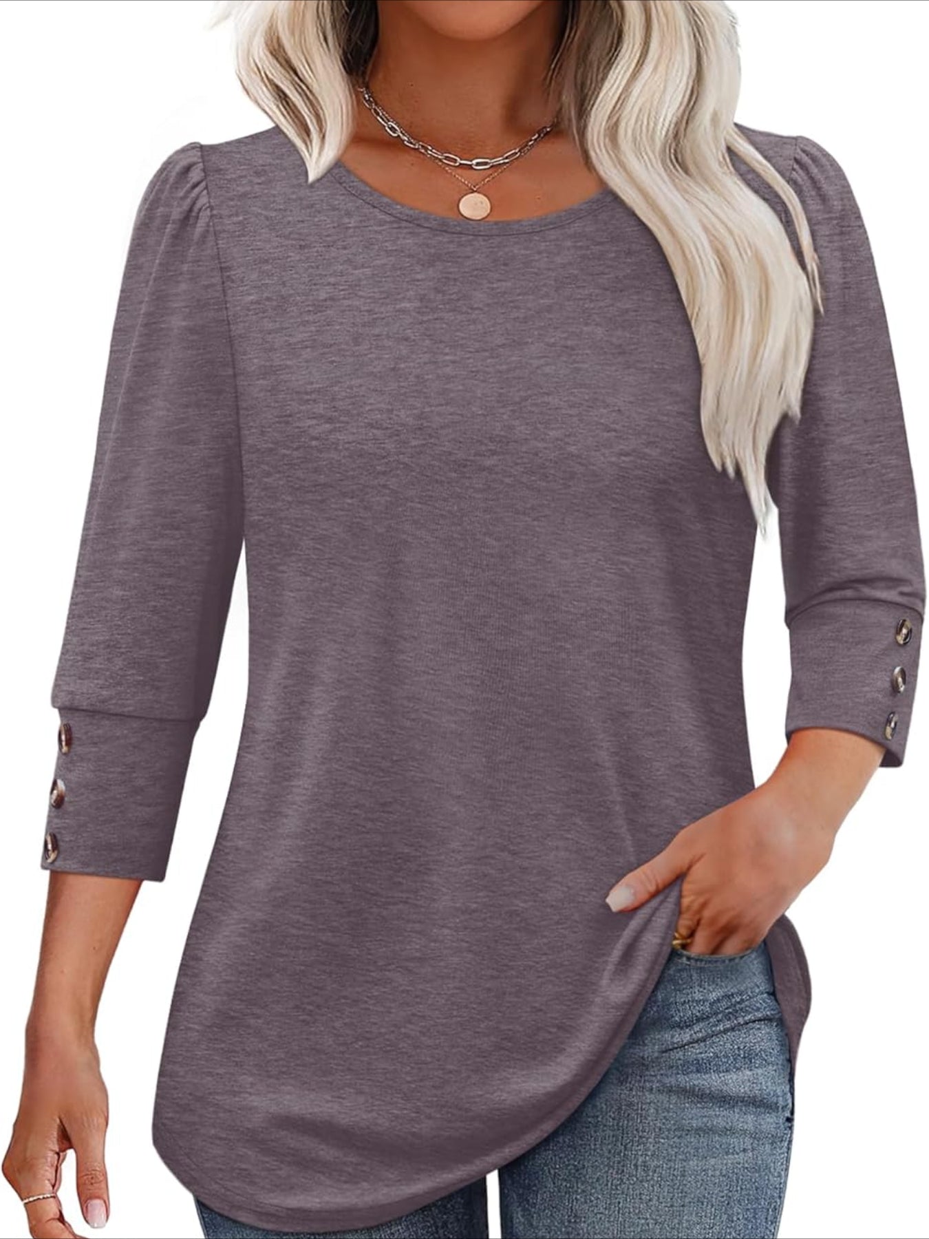 3/4 Sleeve with Buttons Dressy Casual Blouses