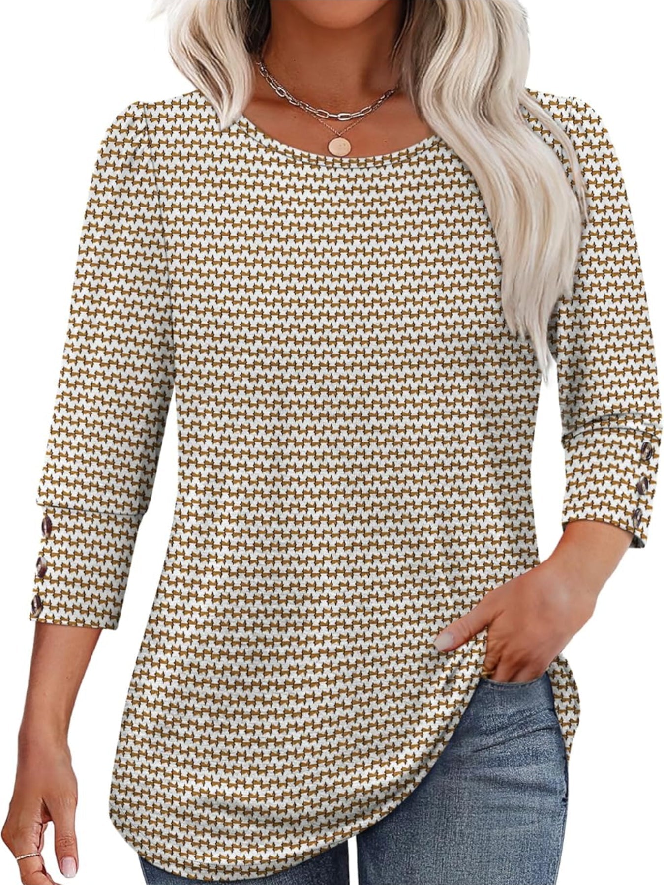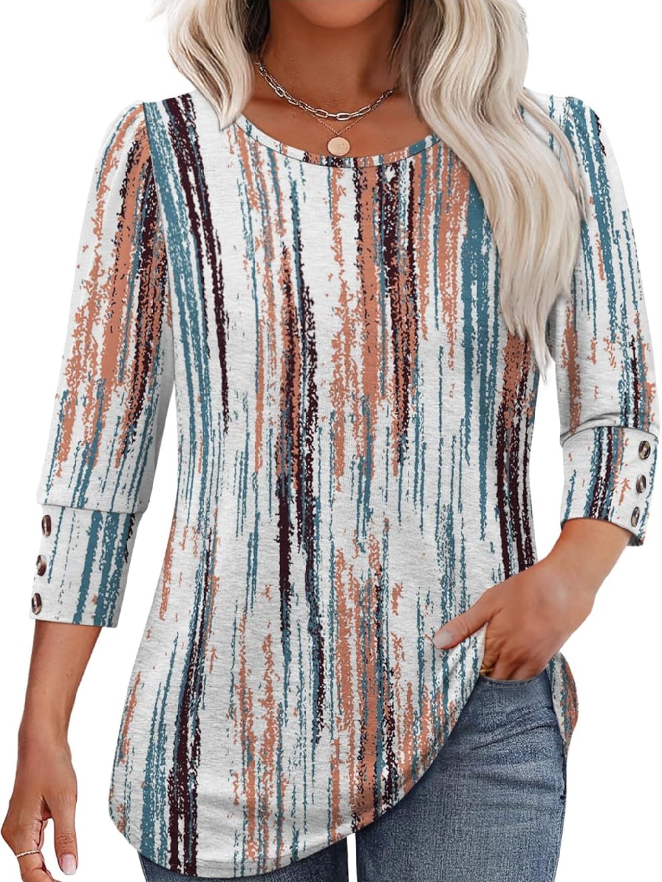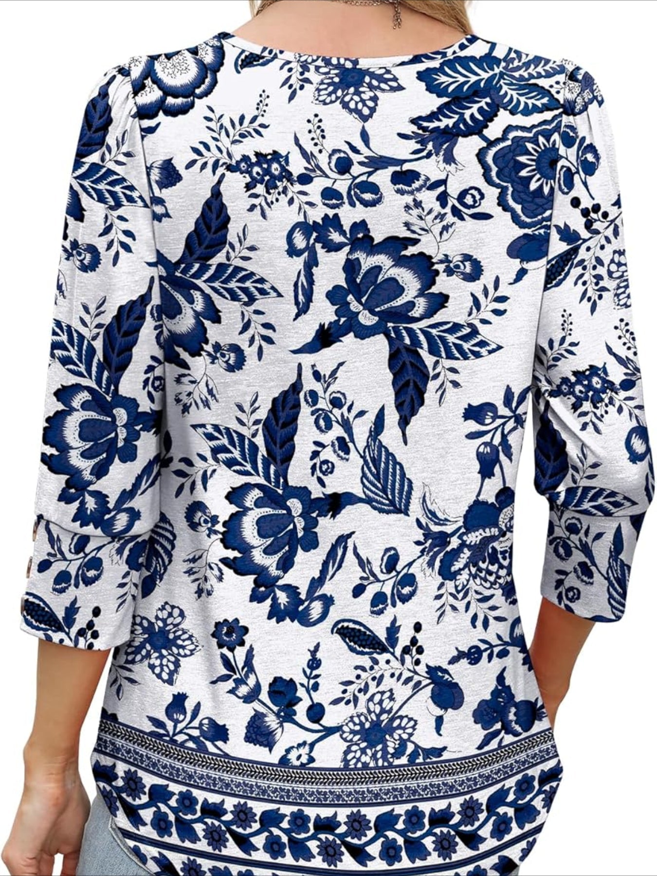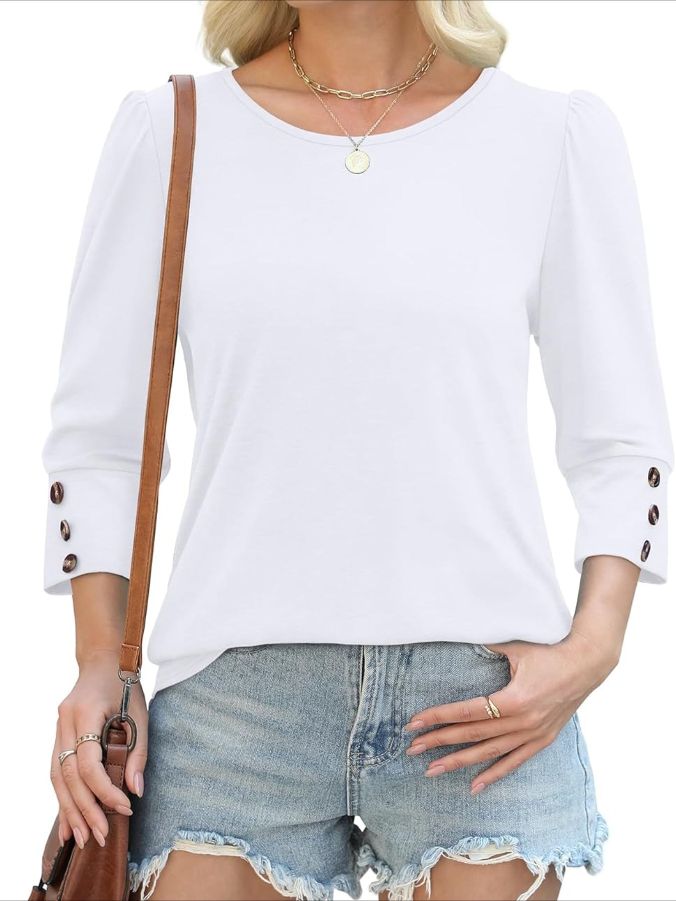 3/4 Sleeve with Buttons Dressy Casual Blouses