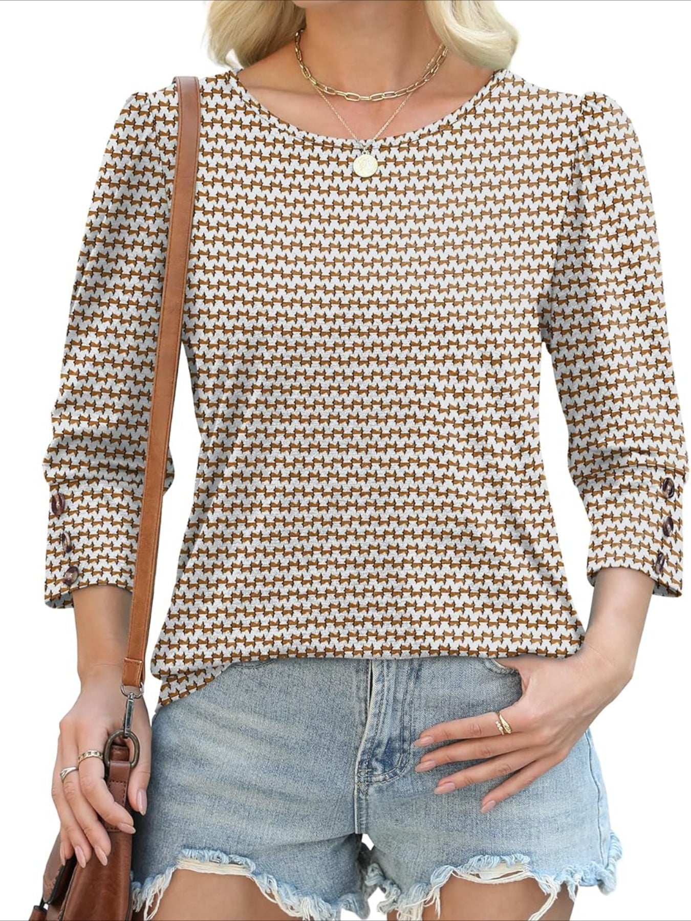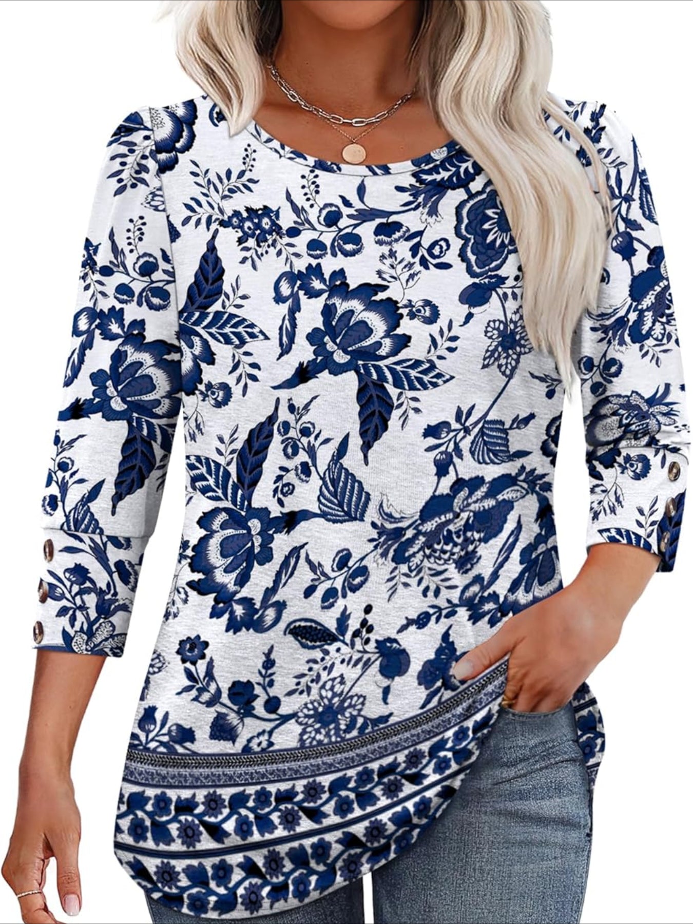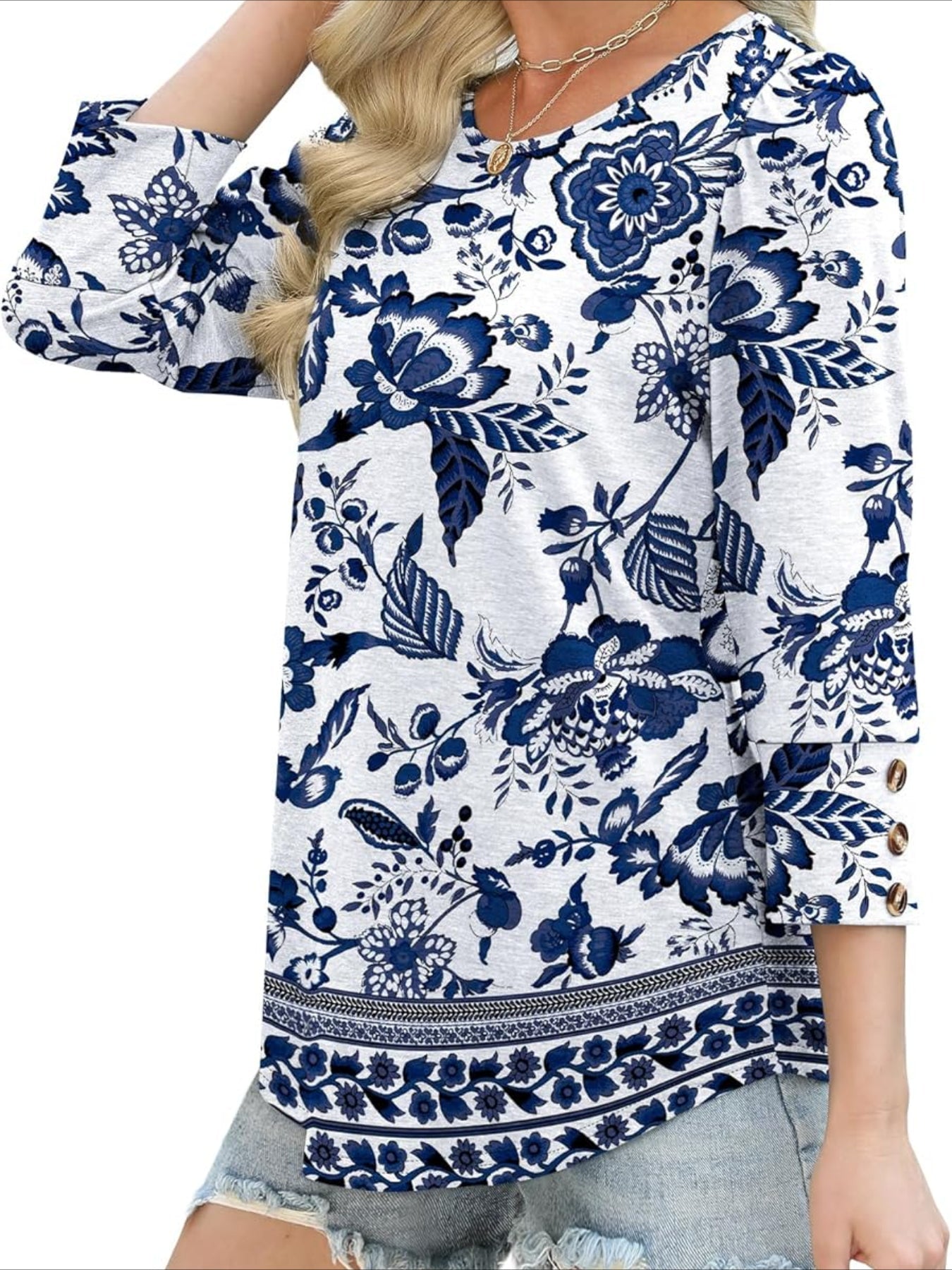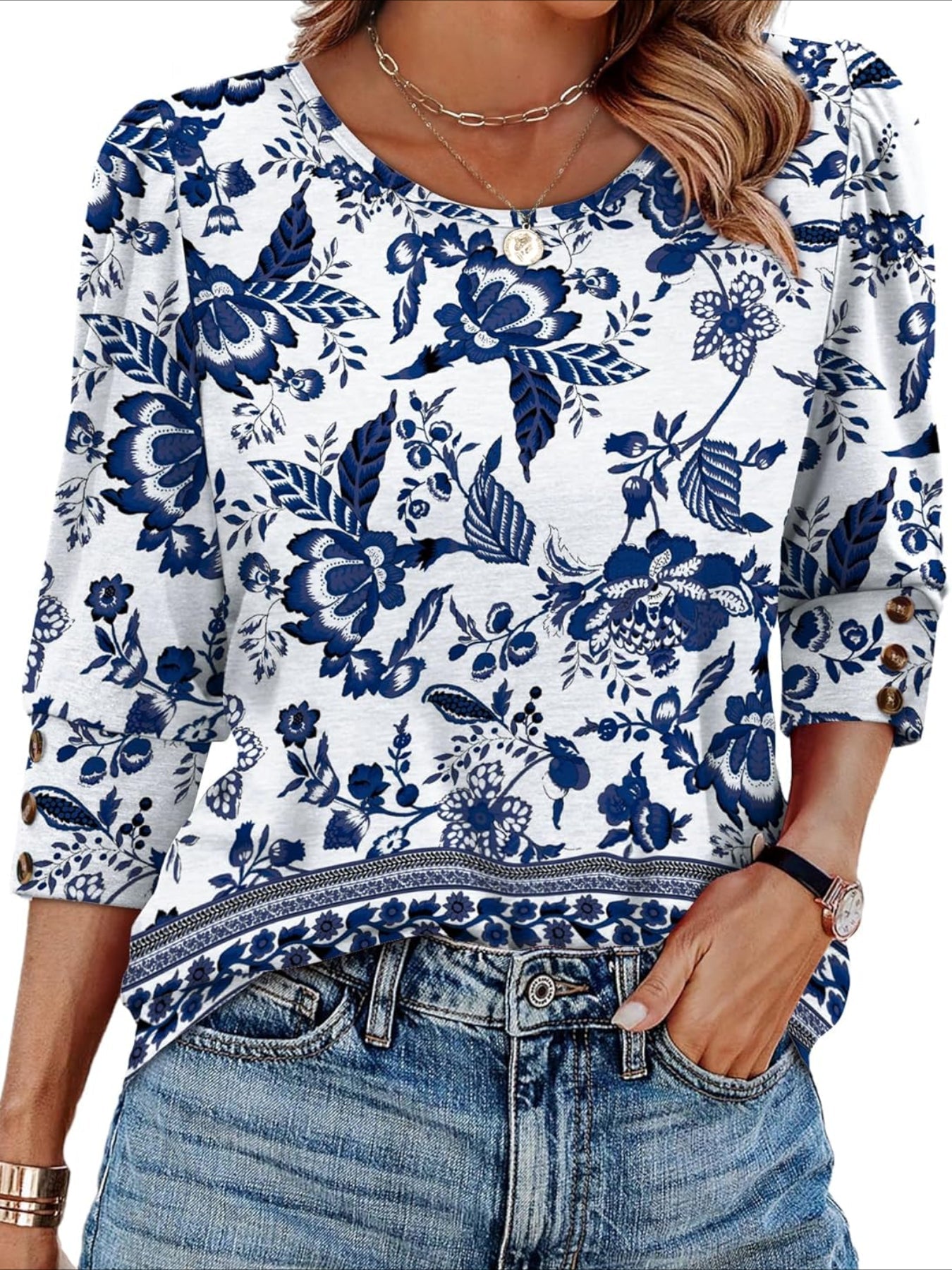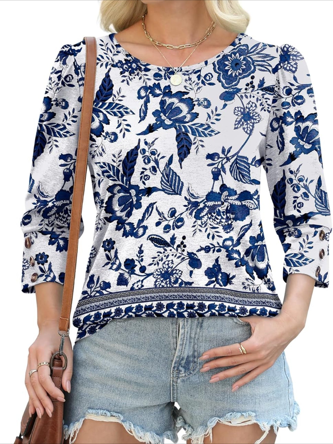 3/4 Sleeve with Buttons Dressy Casual Blouses