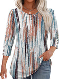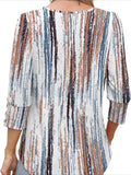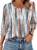Sale Graphic Geometric Striped Elegant Vintage Fashion Long Sleeve Crew Neck Regular Tops