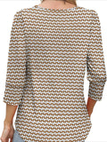Sale V Neck Long Sleeve Geometric Regular Micro-Elasticity Regular Fit Blouse