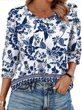 Sale Casual Contrast Lace Round Neck Long Sleeve T-Shirt