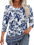 Crew Neck Floral Long Sleeve Comfy Casual Sweater Tee