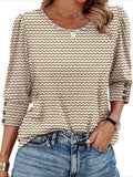 Sale Striped Botton Crew Neck T-Shirt, Elegant Long Sleeve T-Shirt