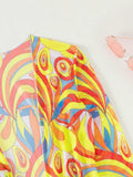 Sale Random Print Bikini Sets, V Neck Layer Bra Tie Side High Cut Casual Beachwear 2 Pieces Swimsuit