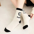 5 Pairs Happy Face Crew Socks, Cartoon Cat Breathable Cotton Mid Tube Socks
