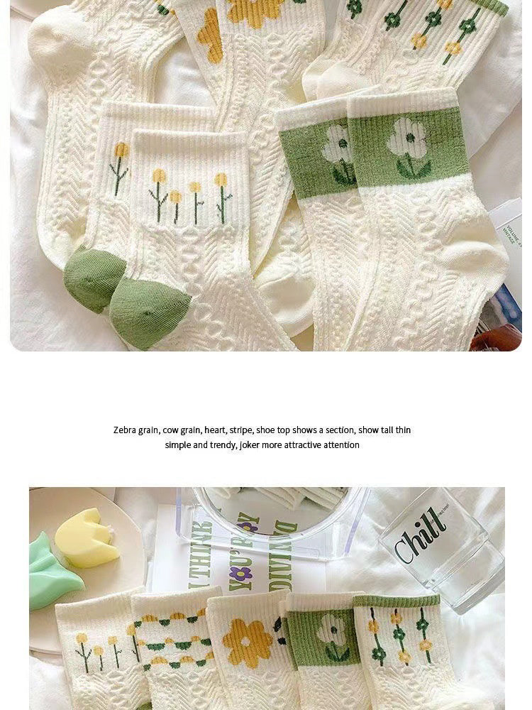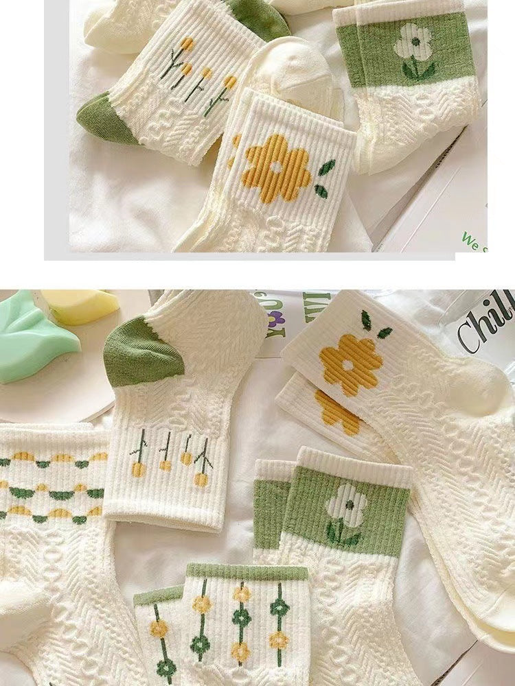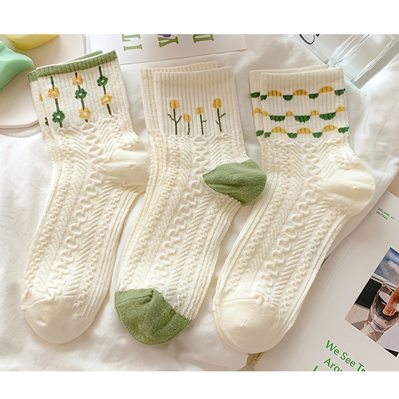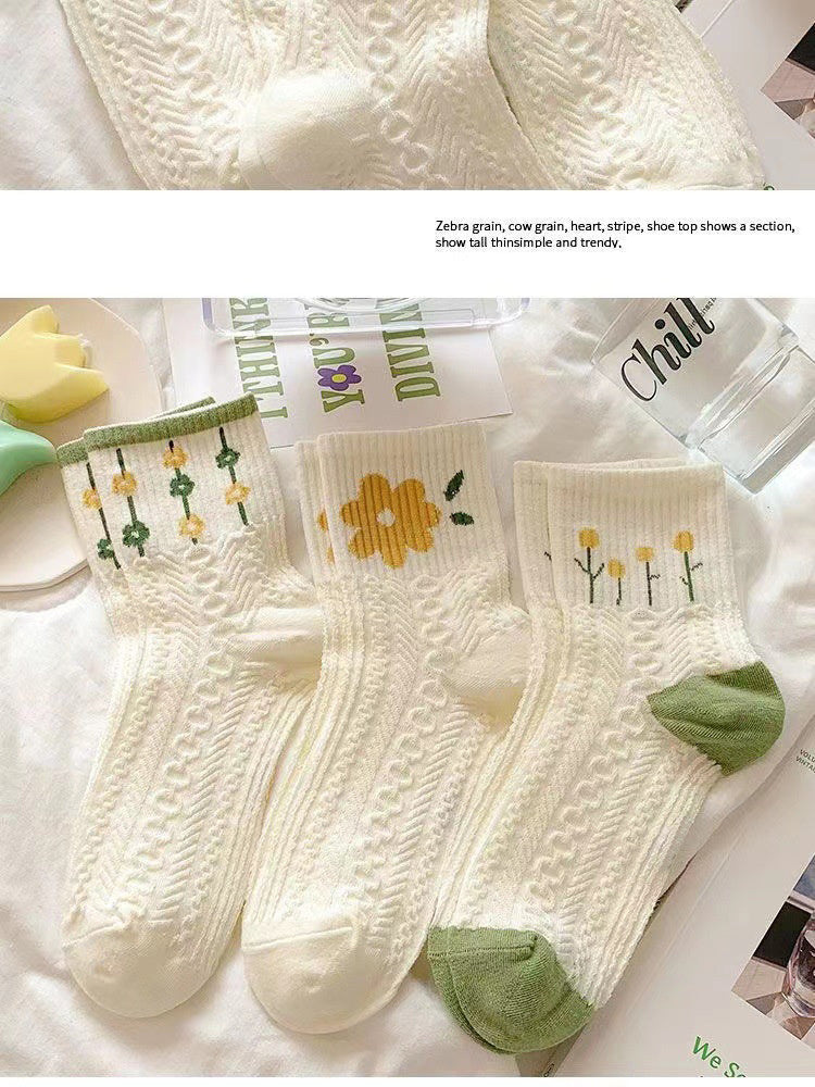 Sale 2/5 pairs Floral Socks Set, Women Cute Flower Geometric 3D Textured Ankle Cotton Blend Cottagecore Lucky Socks