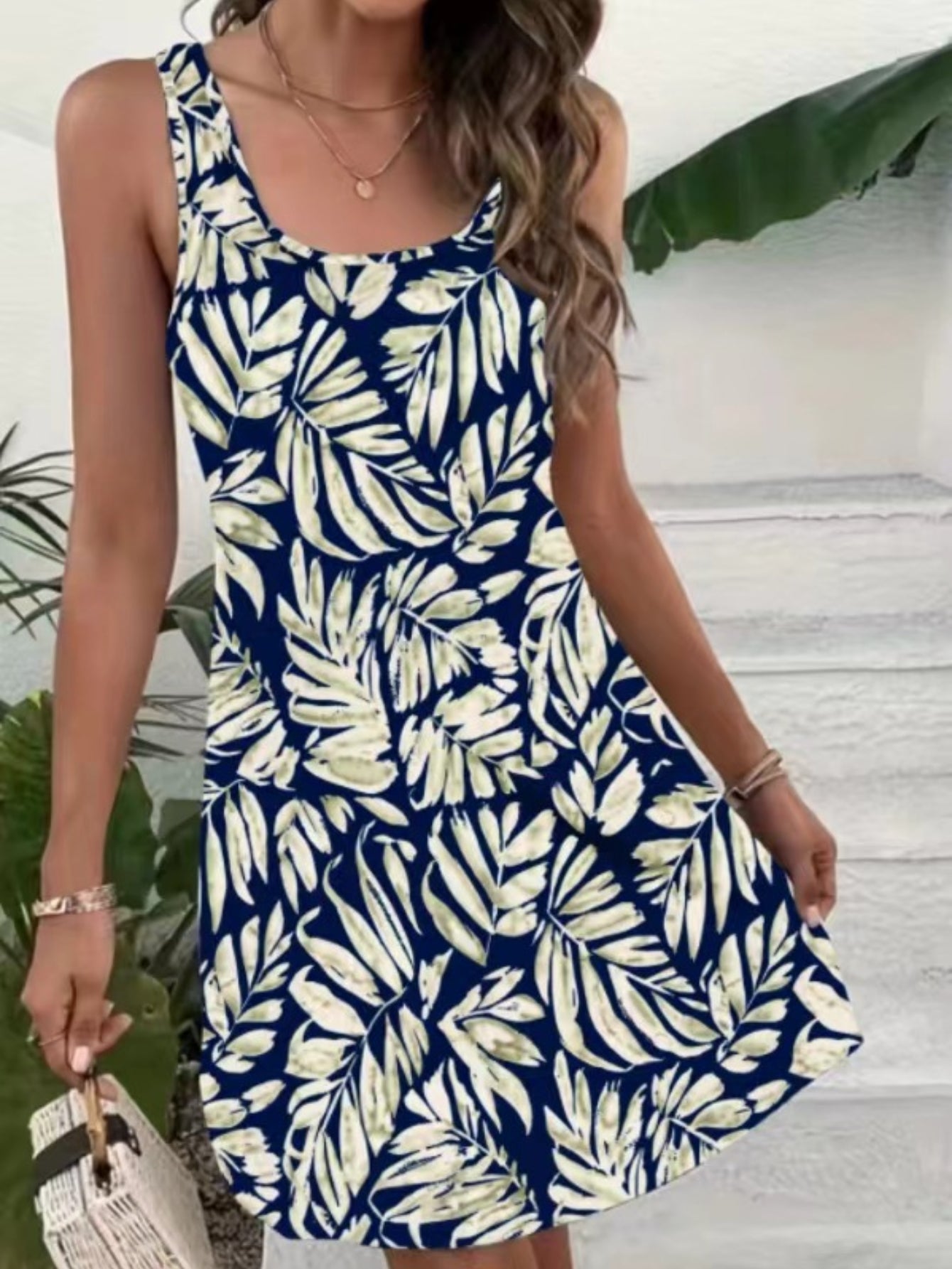 Allover Print Tank Dress, Vacation Sleeveless Dress