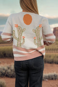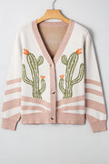 - Desert cactus print adds trendy boho vibes to any casual look.Soft knit fabric keeps this cactus cardigan warm and comfy.Buttoned front design makes layering this cardigan easy and chic.Relaxed fit flatters all shapes for effortless styling.