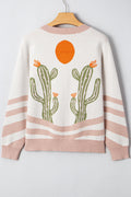 Apricot Desert Cactus Buttoned Front Sweater Cardigan