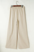 Apricot Loop Drawstring Elastic Waistband Casual Wide Leg Pants