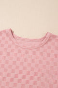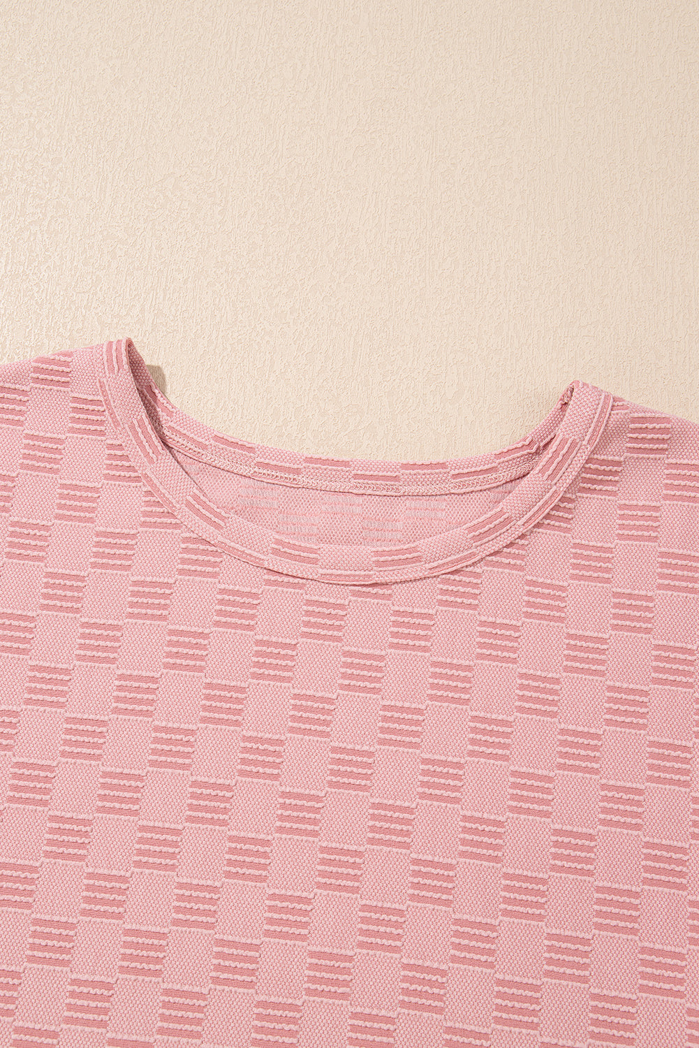Sale Apricot Pink Checkered Textured Round Neck T-shirt