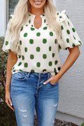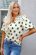 - The polka dot pattern adds sweet and elegant flair to this top.
