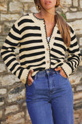 Apricot Stripe Chic Golden Button Cardigan Sweater