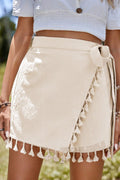 Apricot Tassel Trim Wrap Knot Side Bohemian Style Mini Skort