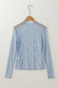 Sale Ashleigh Blue Sheer Floral Lace Long Sleeve Slim Fit Top