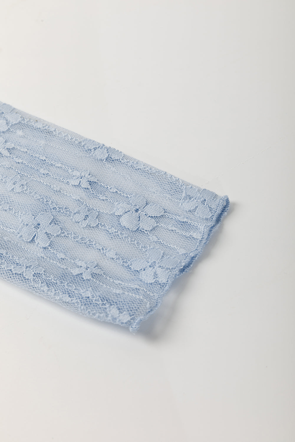 Sale White Mesh Bow Pattern Long Sleeve Top