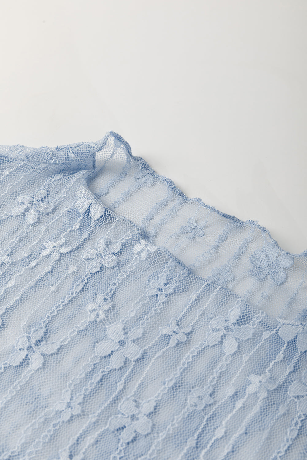 - Sexy fitted long sleeve top in precious lace made.Classic mock neckline, fitted long sleeves and lettuce hem detailing throughout.Pretty delicate and sheer floral lace top, how graceful and lustful.This lace top is a stunning piece perfect for layering or wearing on its own with bralette.