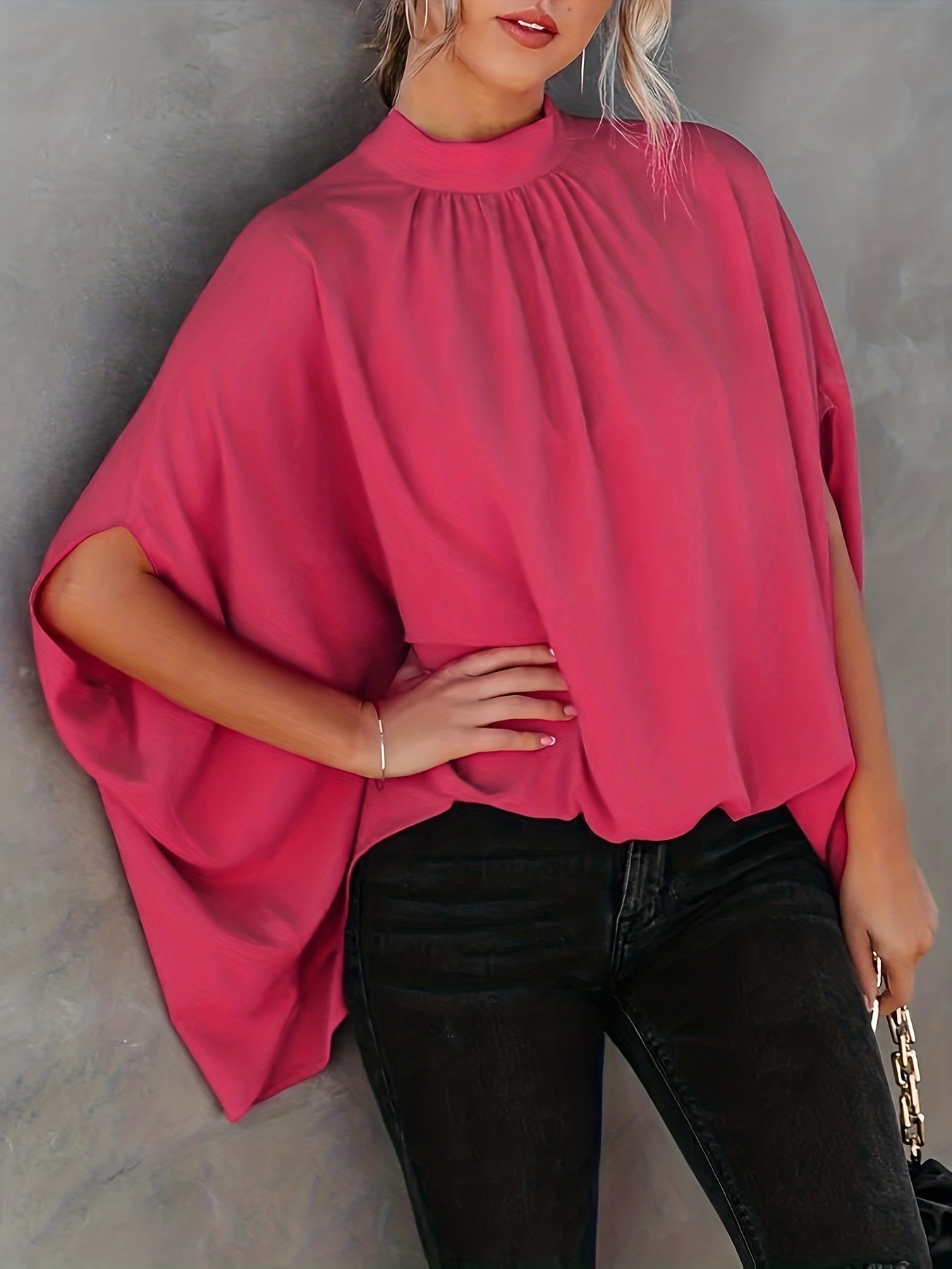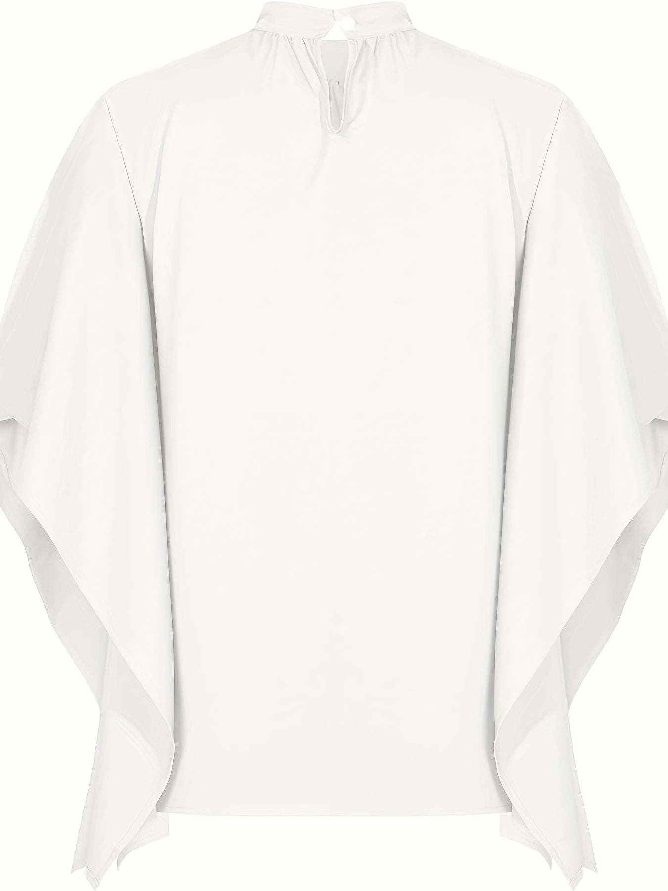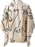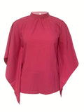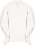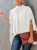 Asymmetrical High Neck Batwing Sleeve Shirt, Letter Print Elegant Summer Stretchy Shirt