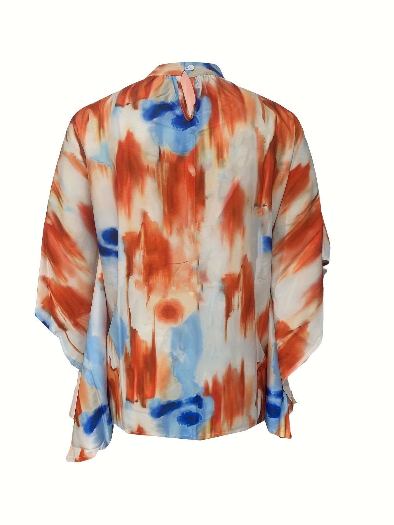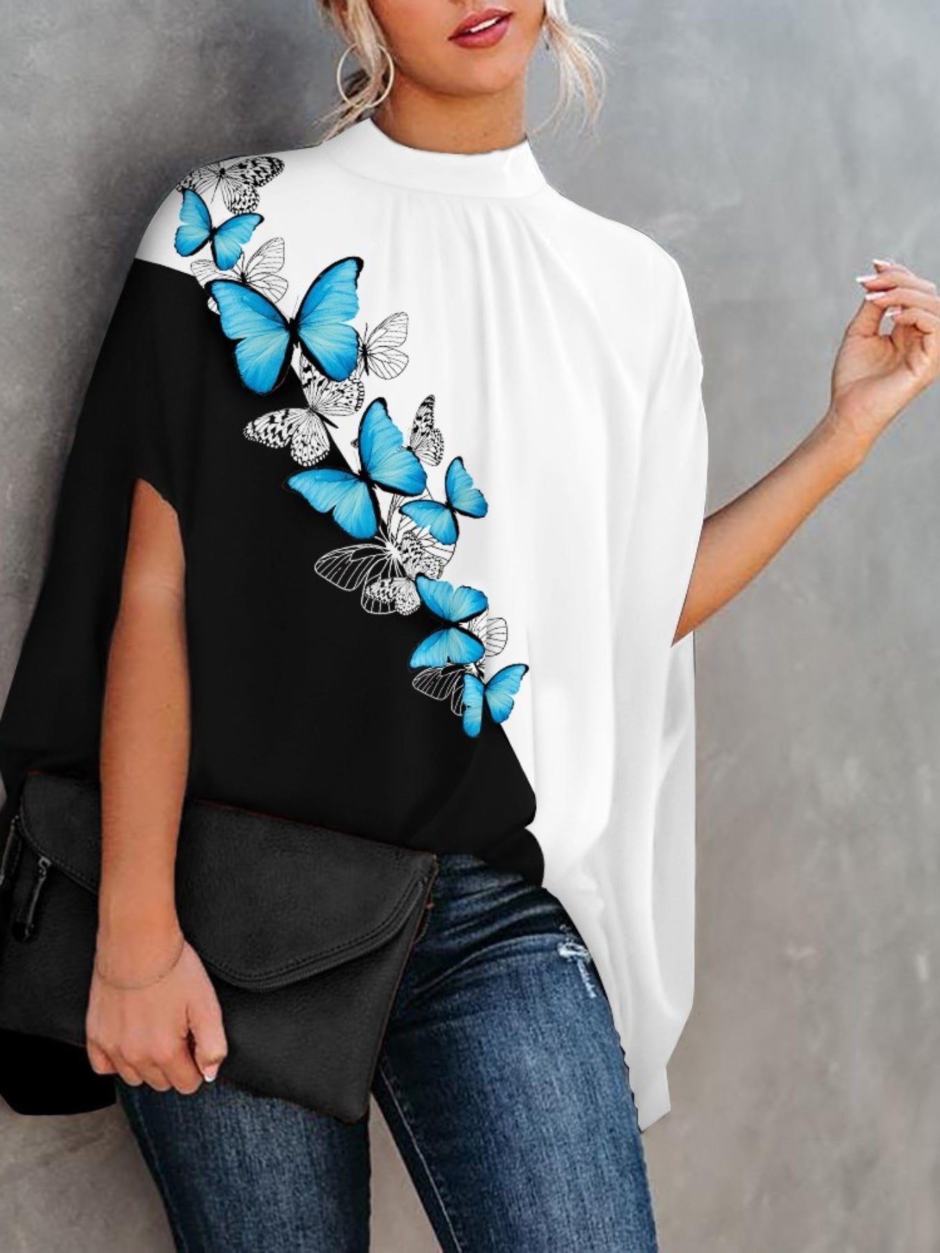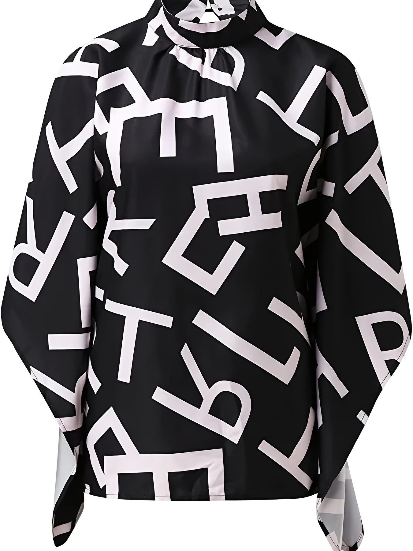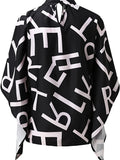 Sale Asymmetrical High Neck Batwing Sleeve Shirt, Letter Print Elegant Summer Stretchy Shirt