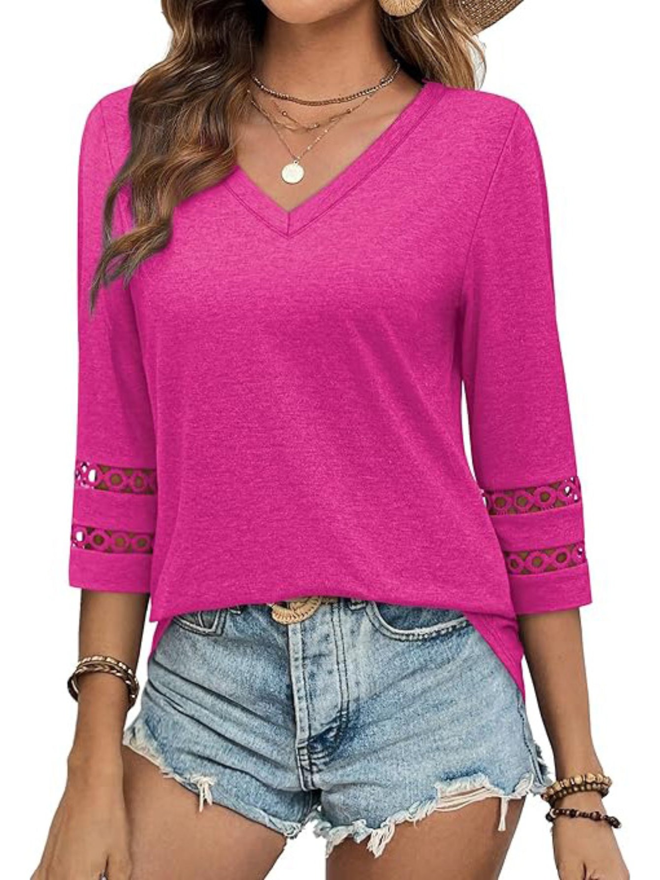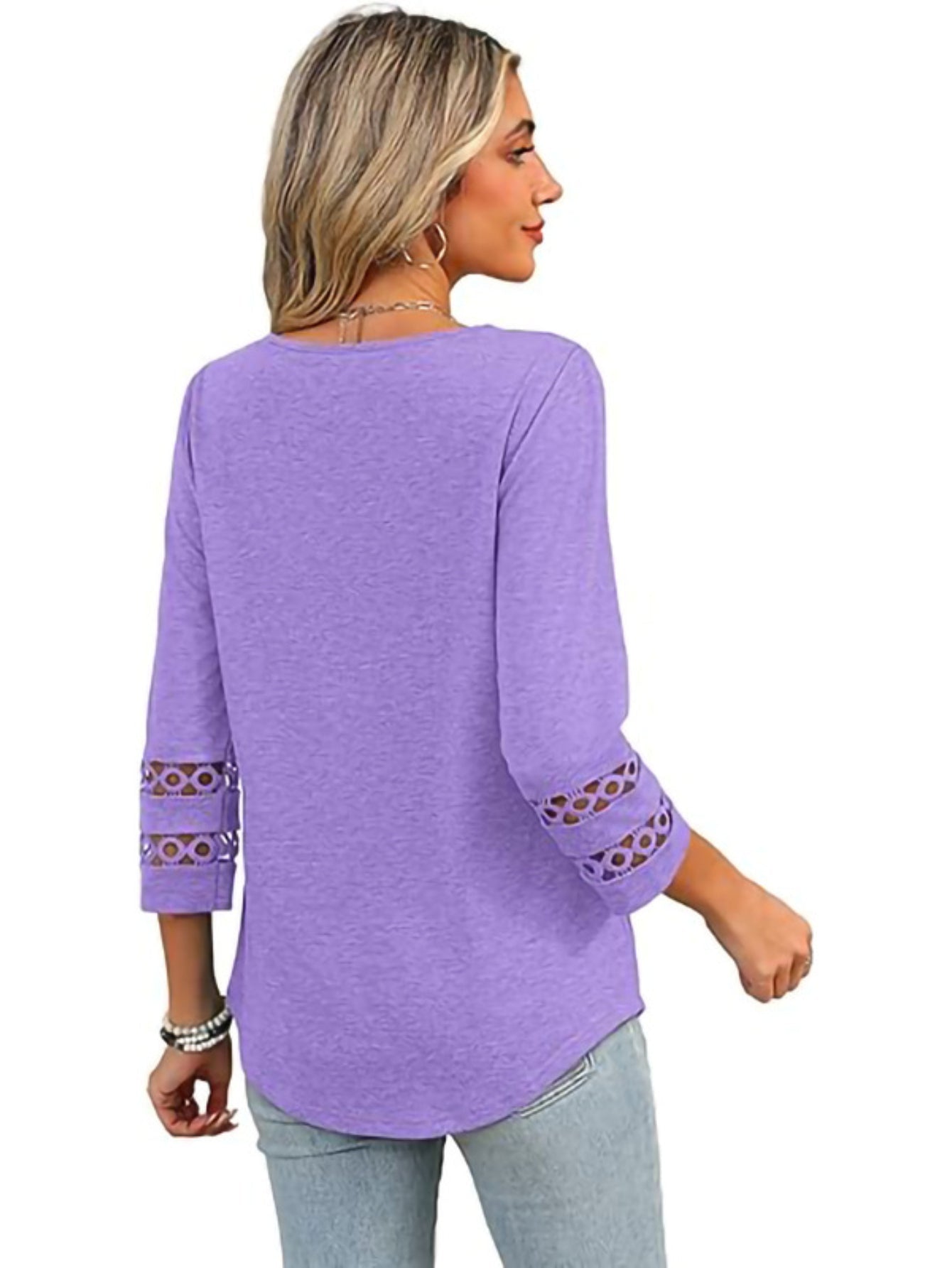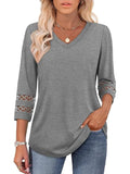 Sale 3/4 Length Sleeve Crewneck Lace Tunic Tops