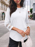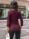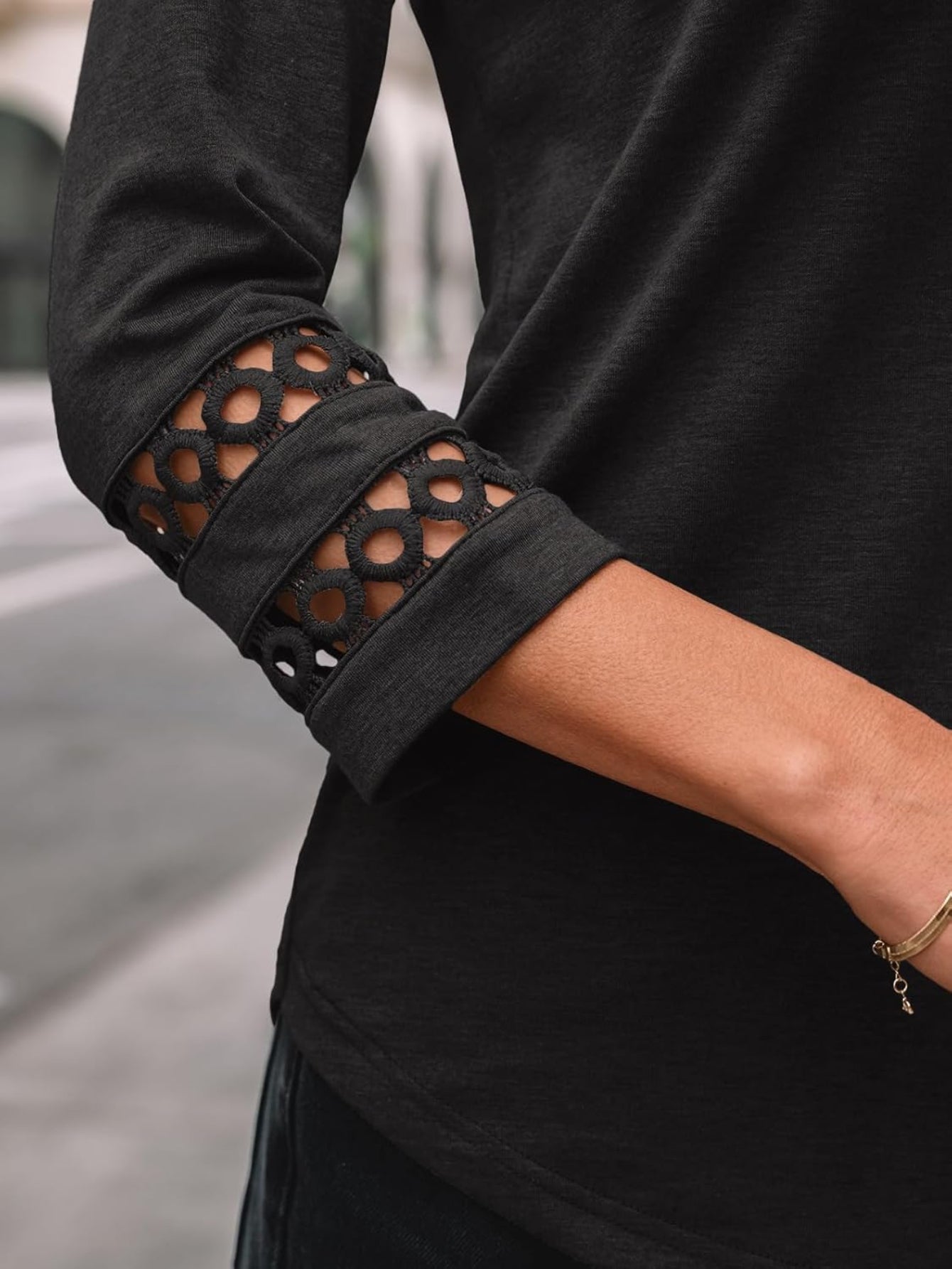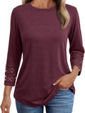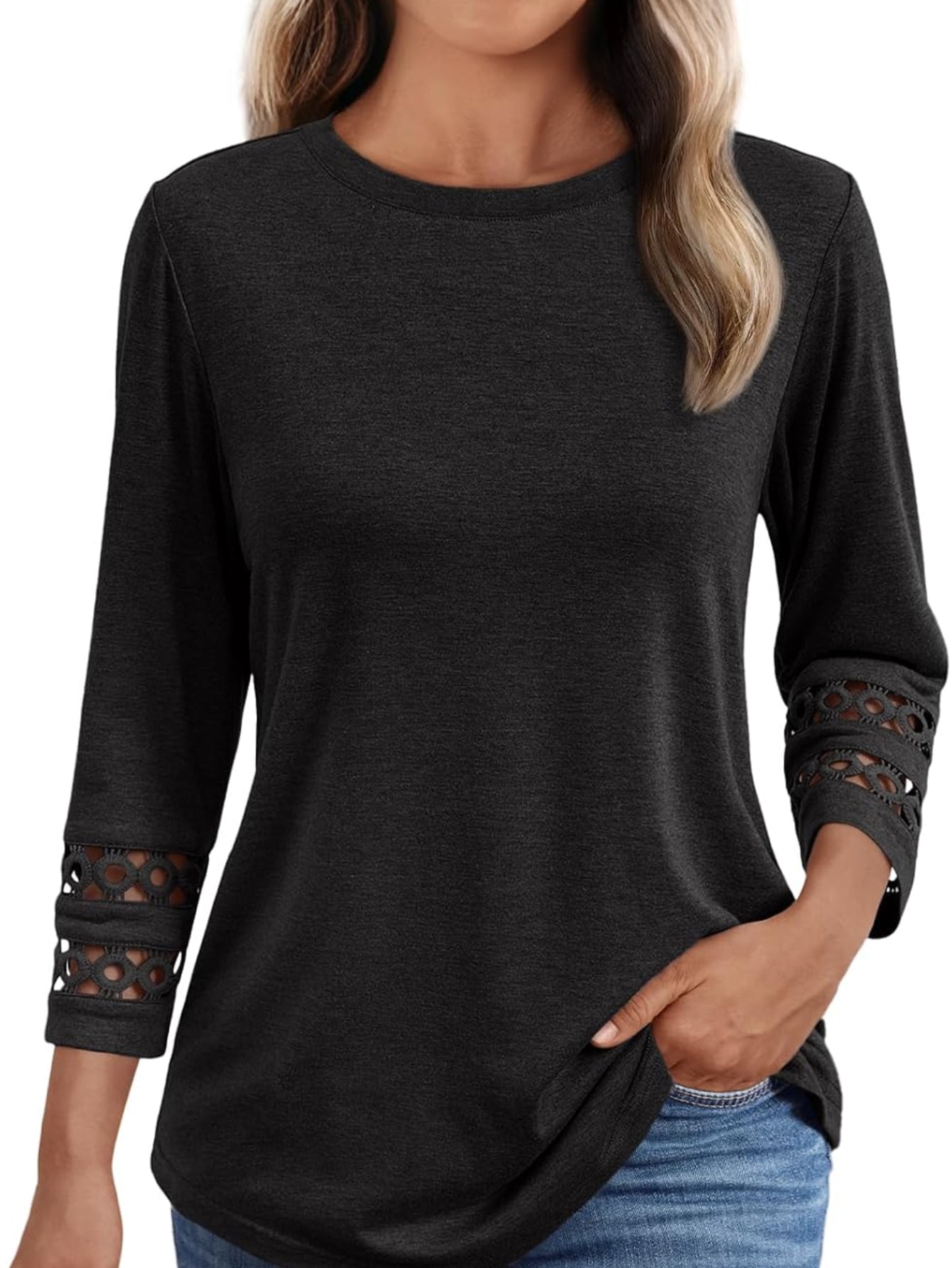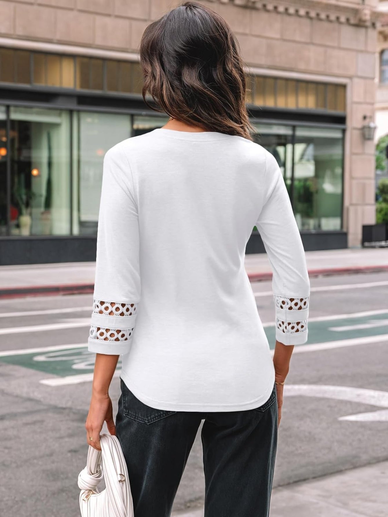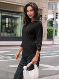 3/4 Length Sleeve Crewneck Lace Tunic Tops