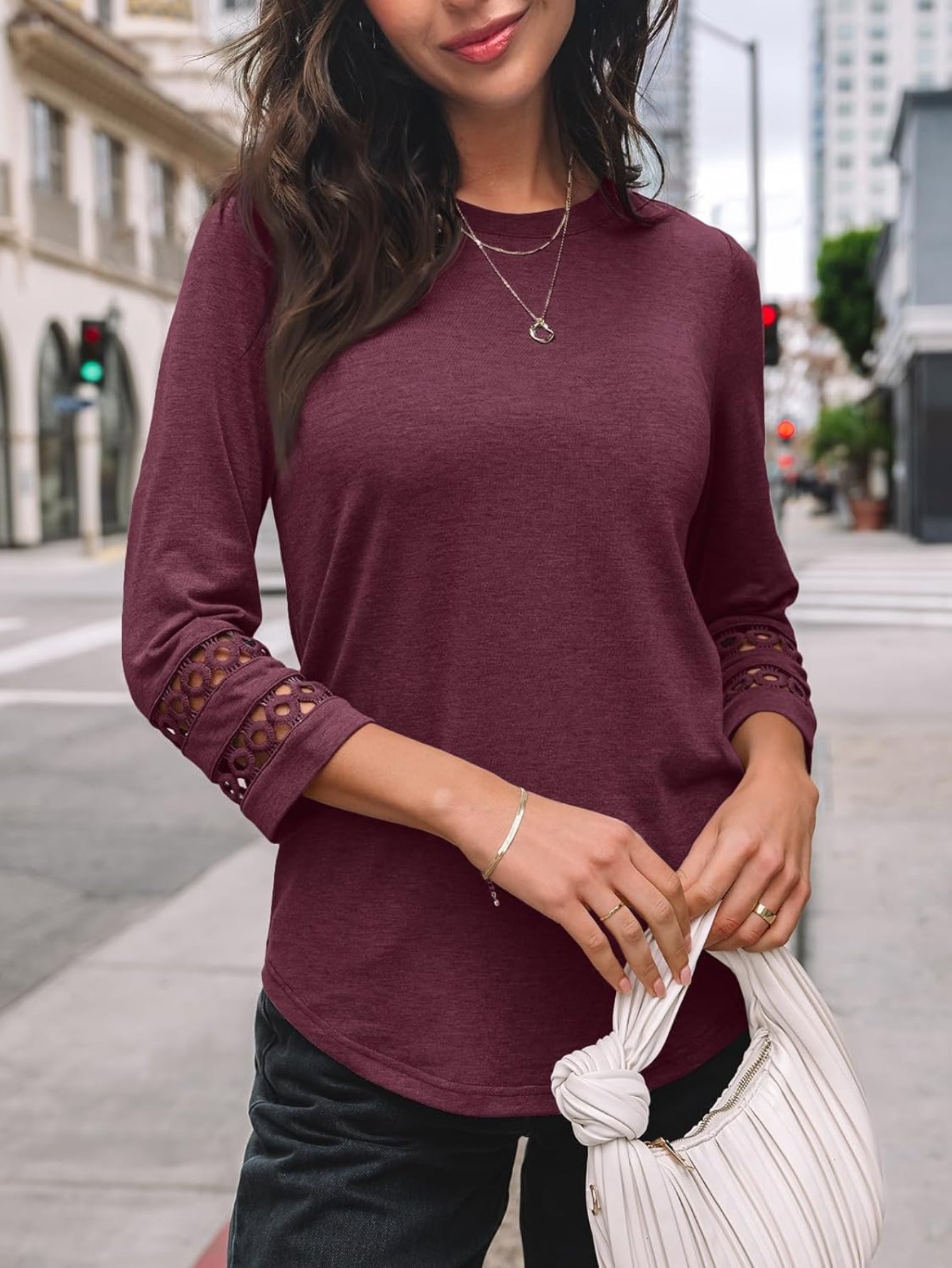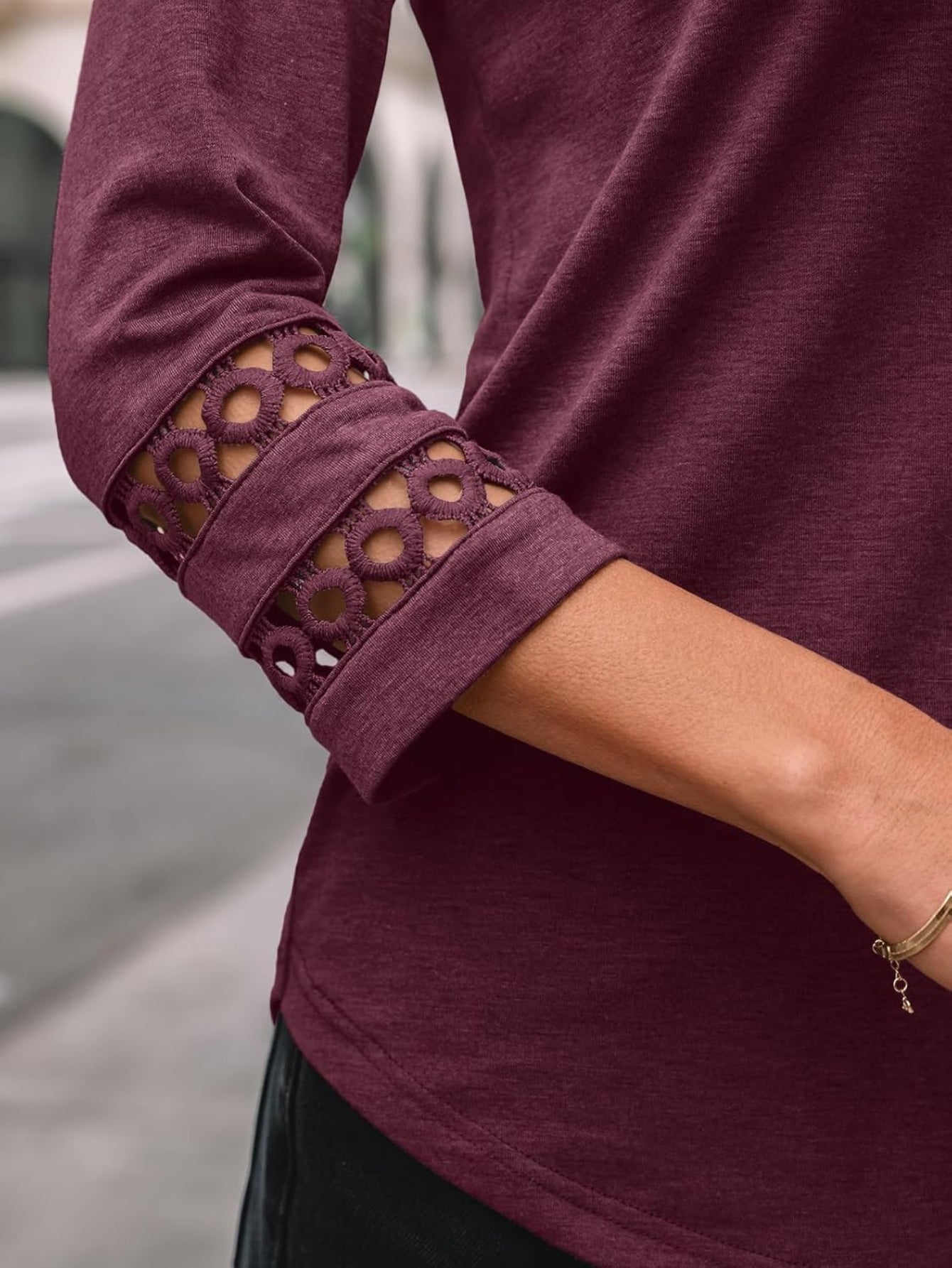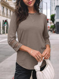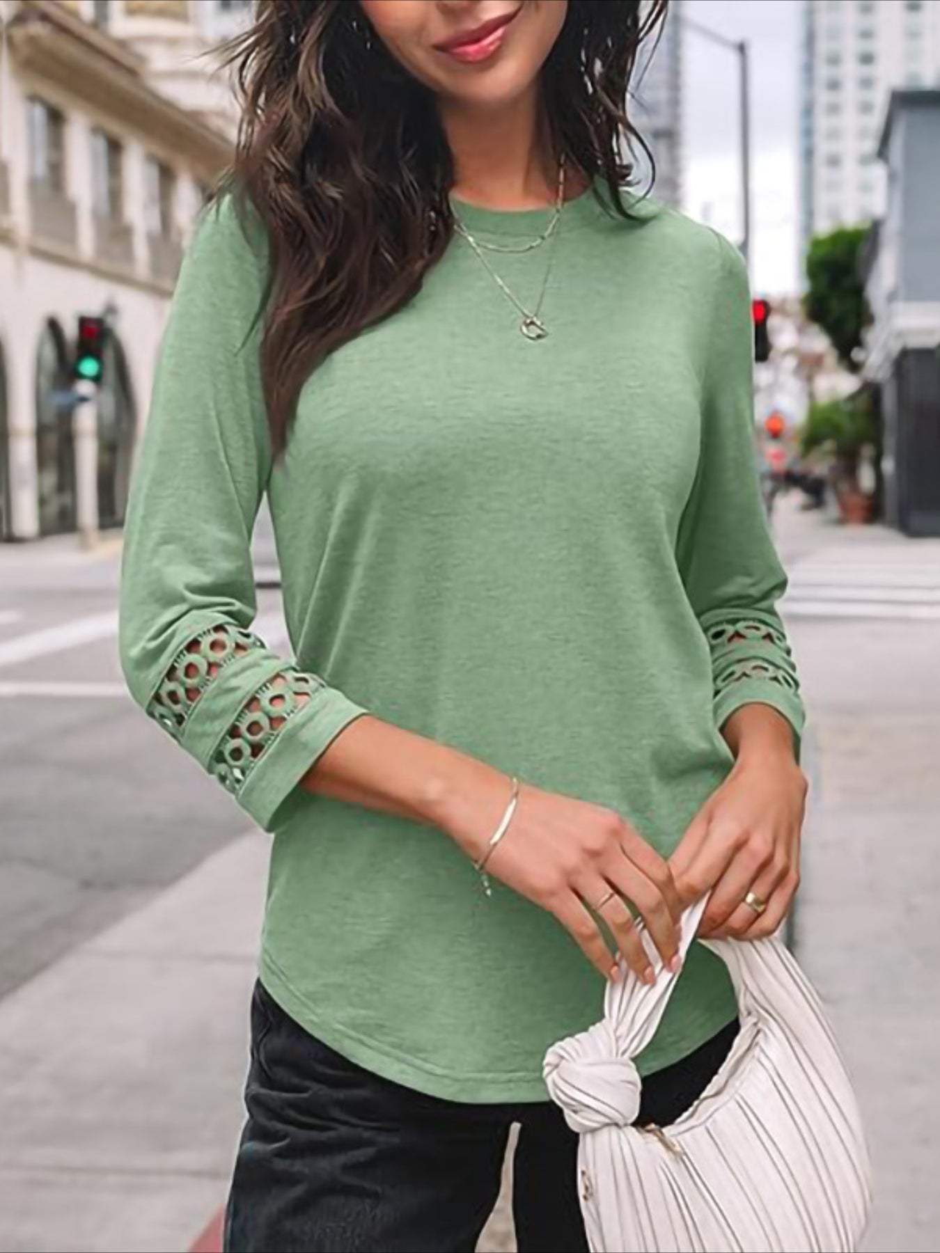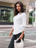 Sale Casual Contrast Lace Round Neck Long Sleeve T-Shirt