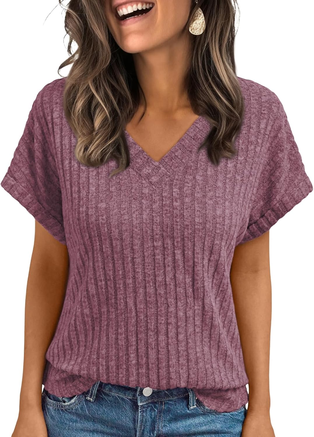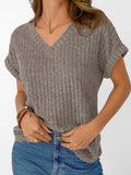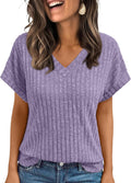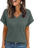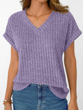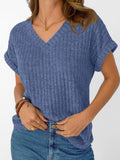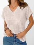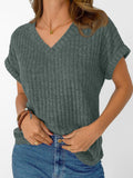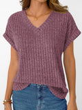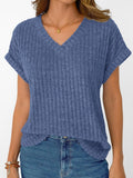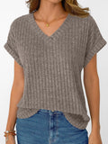 Solid Color Short Sleeve V Neck Shirts
