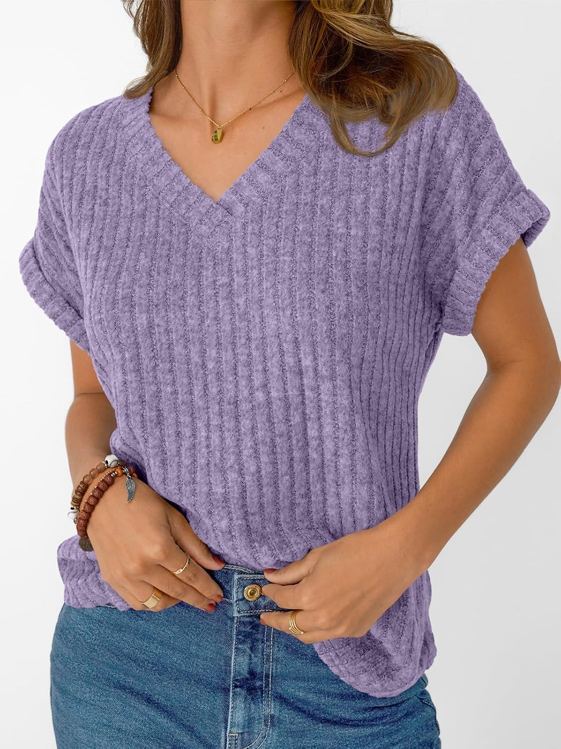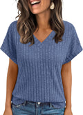 Sale Solid Color Short Sleeve V Neck Shirts