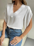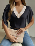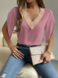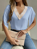 Batwing Sleeve Lace Patchwork Elegant Solid V-neck Shirt