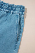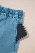 Sale Beau Blue Contrast Drawstring Elastic Waist Denim Shorts
