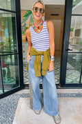 Beau Blue Drawstring Elastic Waist Leopard Striped Side Panel Wide Leg Jeans