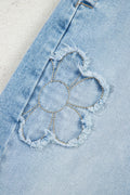 Beau Blue Flower Patched Light Wash Cropped High Waist Jeans