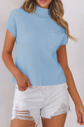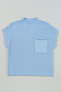 Sale Beau Blue Patch Pocket Ribbed Knit Short Sleeve Sweater